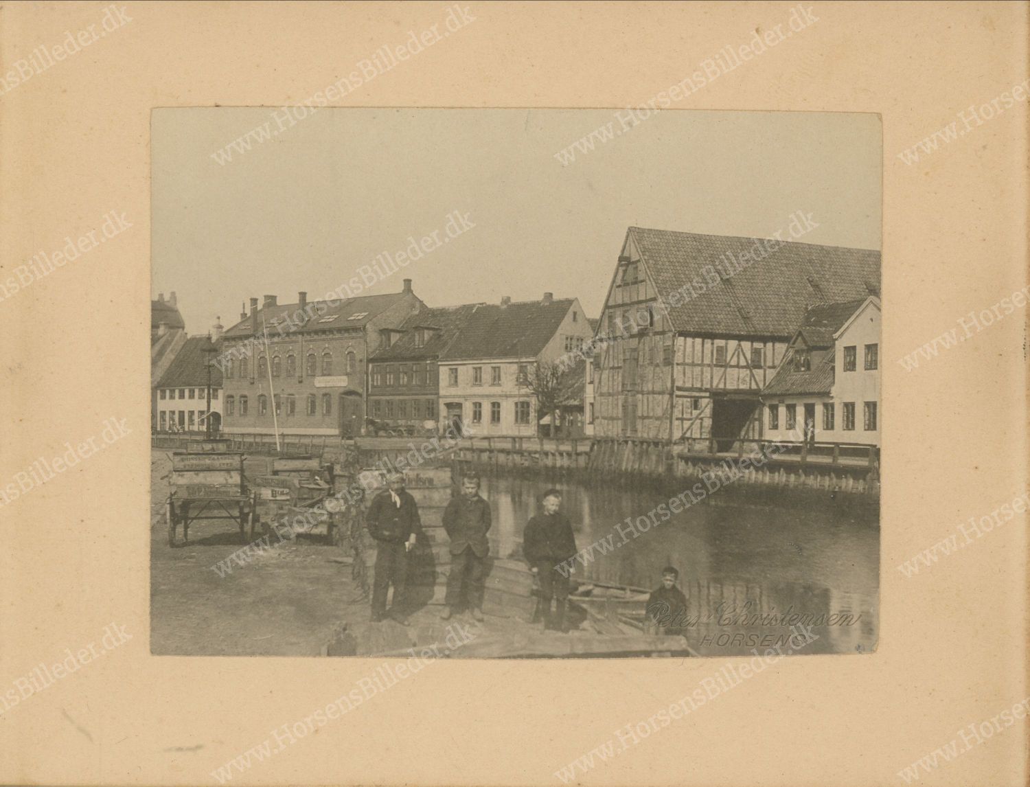 Pakhuset ved Badstuestræde set fra Aagade. Indrammet af Glarmester Johan Norup, Hj. af Torvet og Borgergade, Horsens. Fotograf Peter (Peder) Christensen, Horsens. Udlåner Frank Miller.