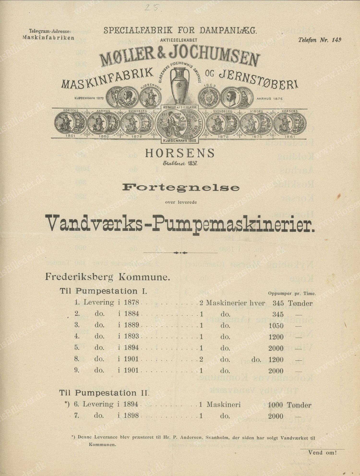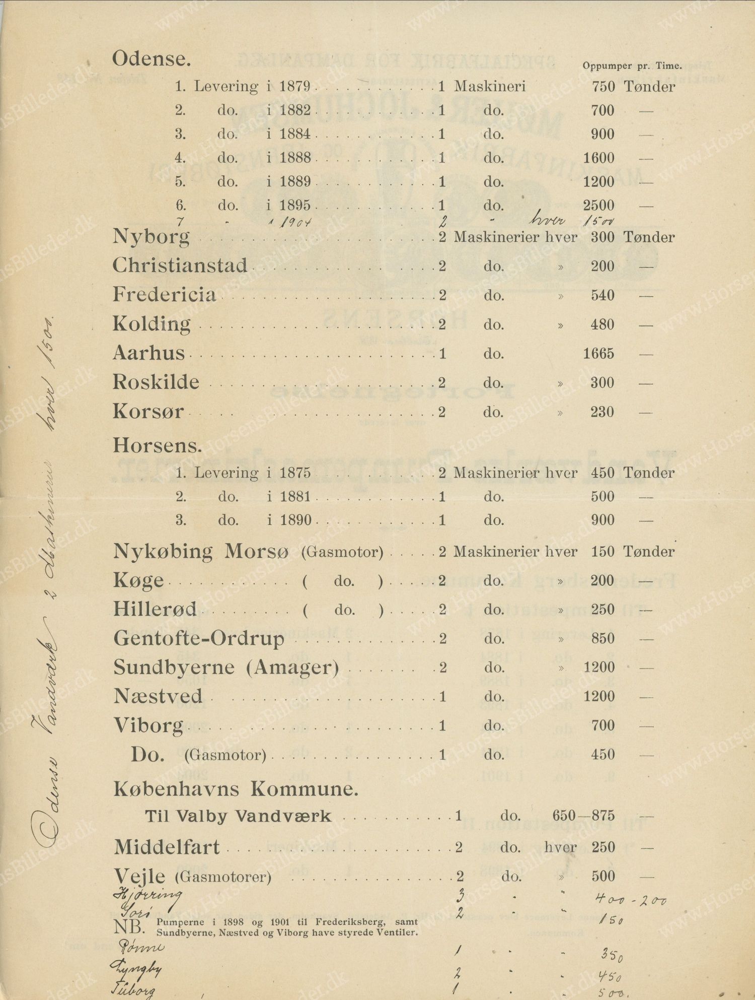 Møller & Jochumsens Fortegnelse over leverede Vandværks-Pumpemaskinerier. Ca. år 1905.. Udlåner Frank Miller.