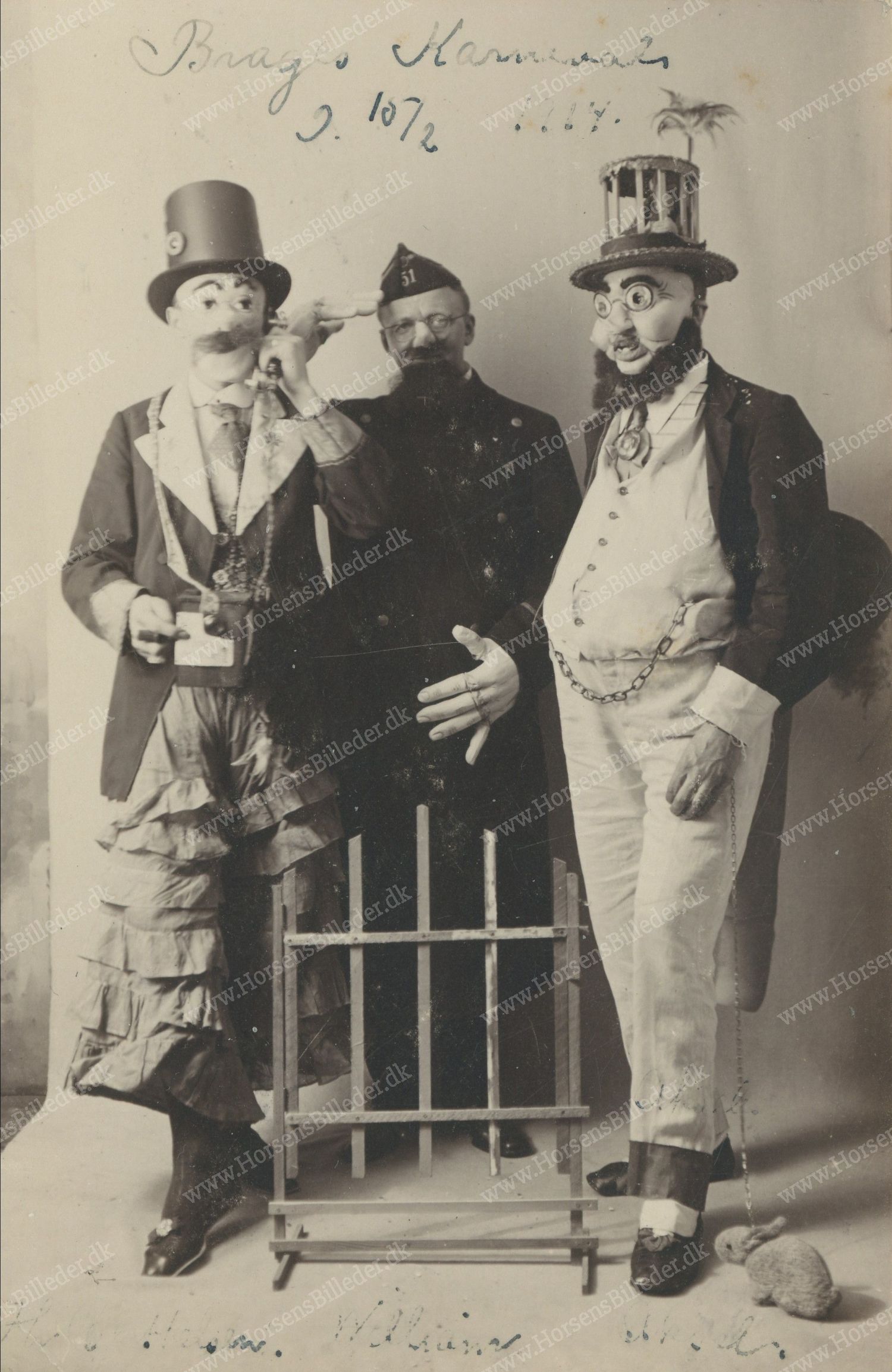 Brages Karneval d. 10/2 1914. Formentlig sangforeningen Brage der afholder karneval. Sangforeningen stiftes den 1. september 1881. Postkort Frank Miller.
