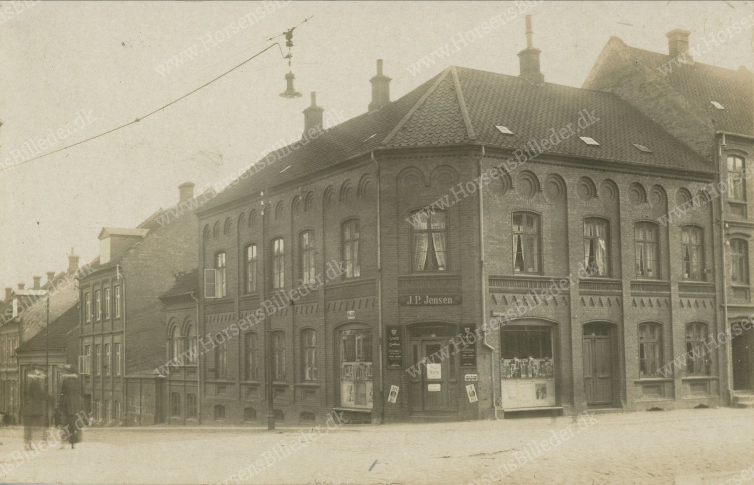 Amaliegade 26 på hjørnet af Gersdorffgade. Her drev J. P. Jensen Urtekramhandel. Ses første gang i vv 1903-04 og sidste gang i skattebogen 1924-25. Postkort Frank Miller.