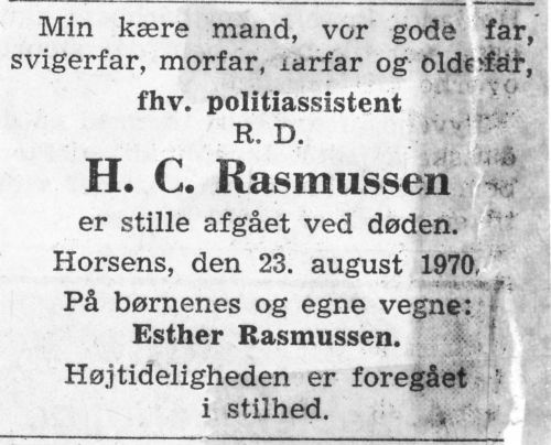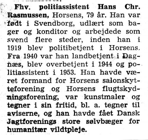 Han blev politibetjent i Horsens i 1919.