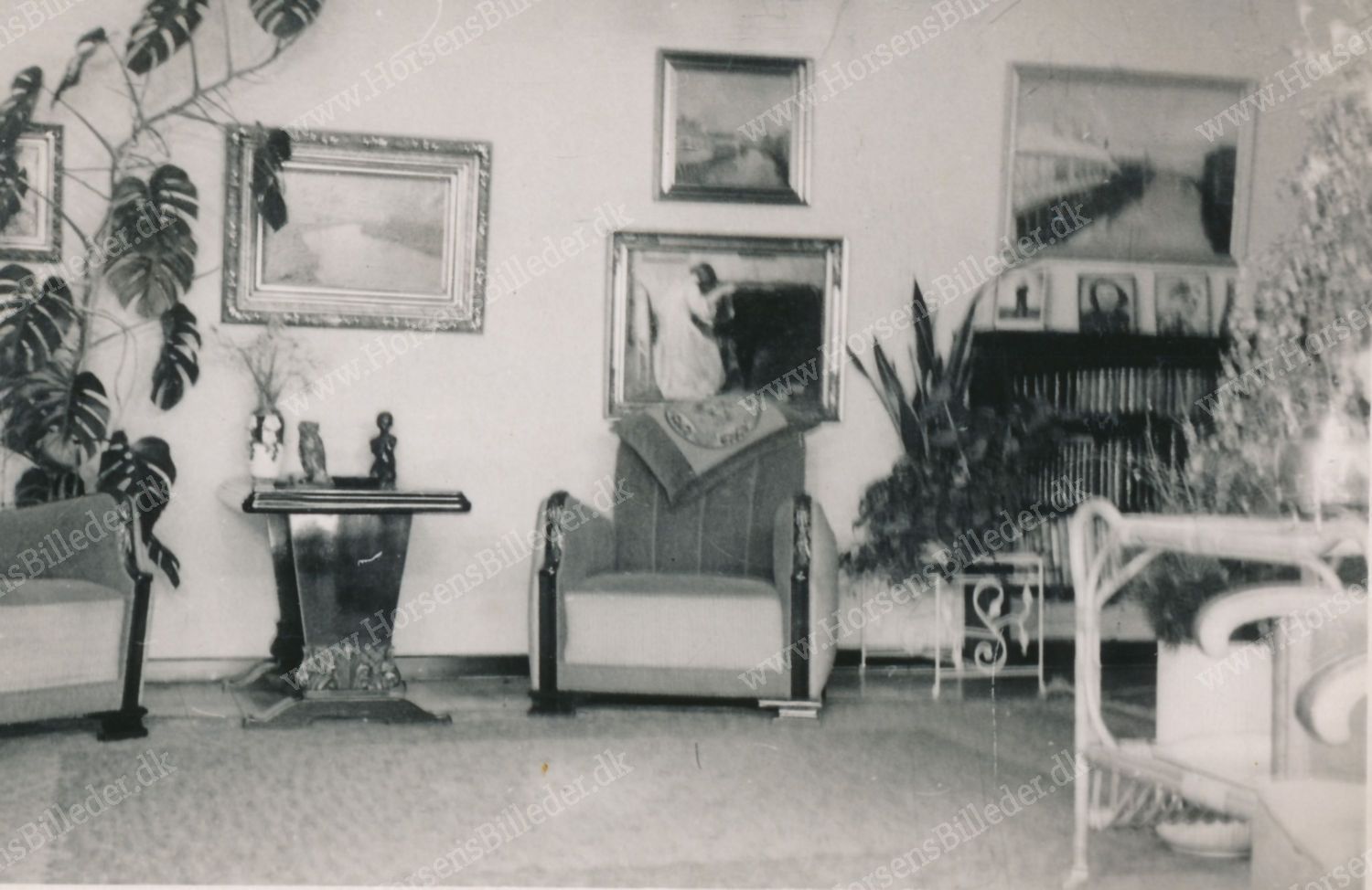 Bjerrevej 150. Stuen bla med malerier malet af H. C. Rasmussen. Udlåner Bente Roldsgaard Rasmussen.