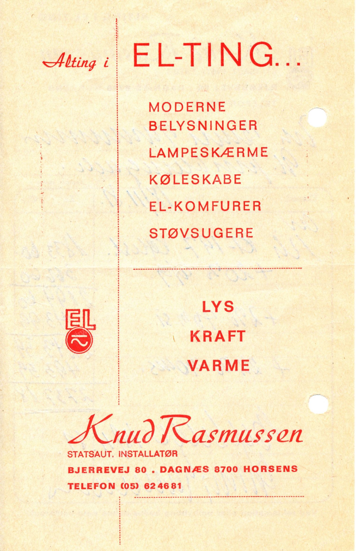 Kvittering fra installatør Knud Rasmussen. Udlåner Bente Roldsgaard Rasmussen.