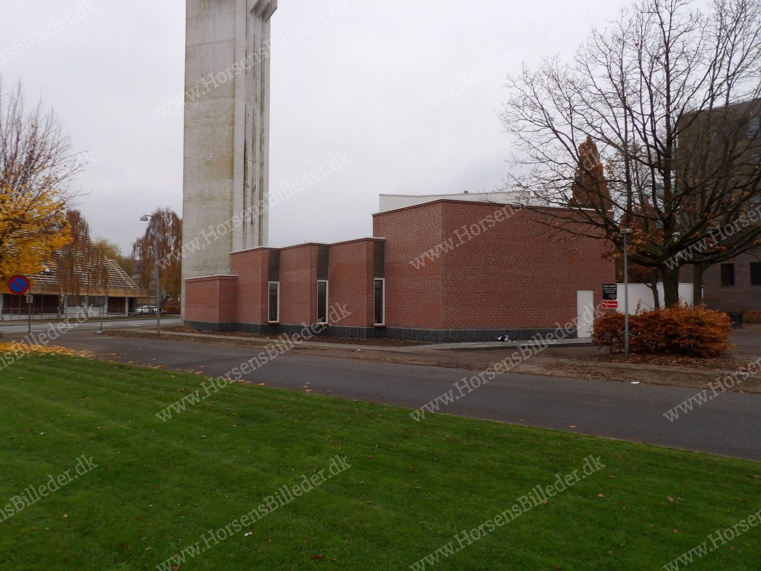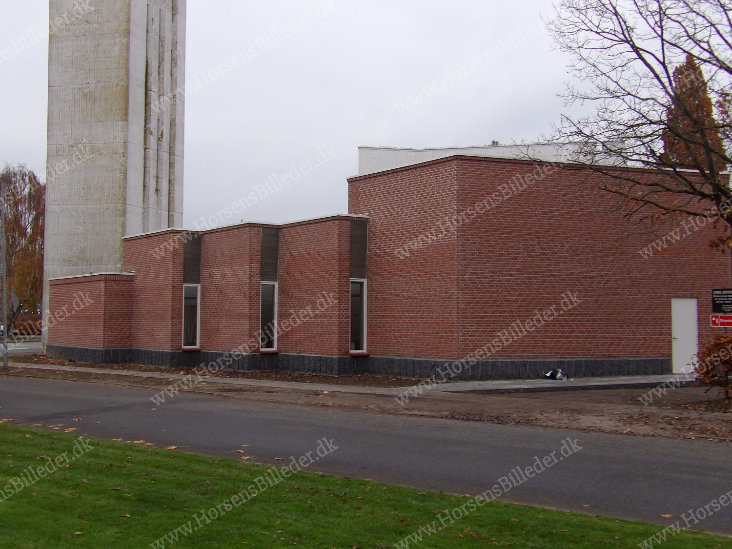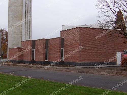 Tilbygning til kirken, bestående af bla kontorer, møderum, tekøkken og mellemgang. Den 8/11-2025. Udlåner John Holgersen.