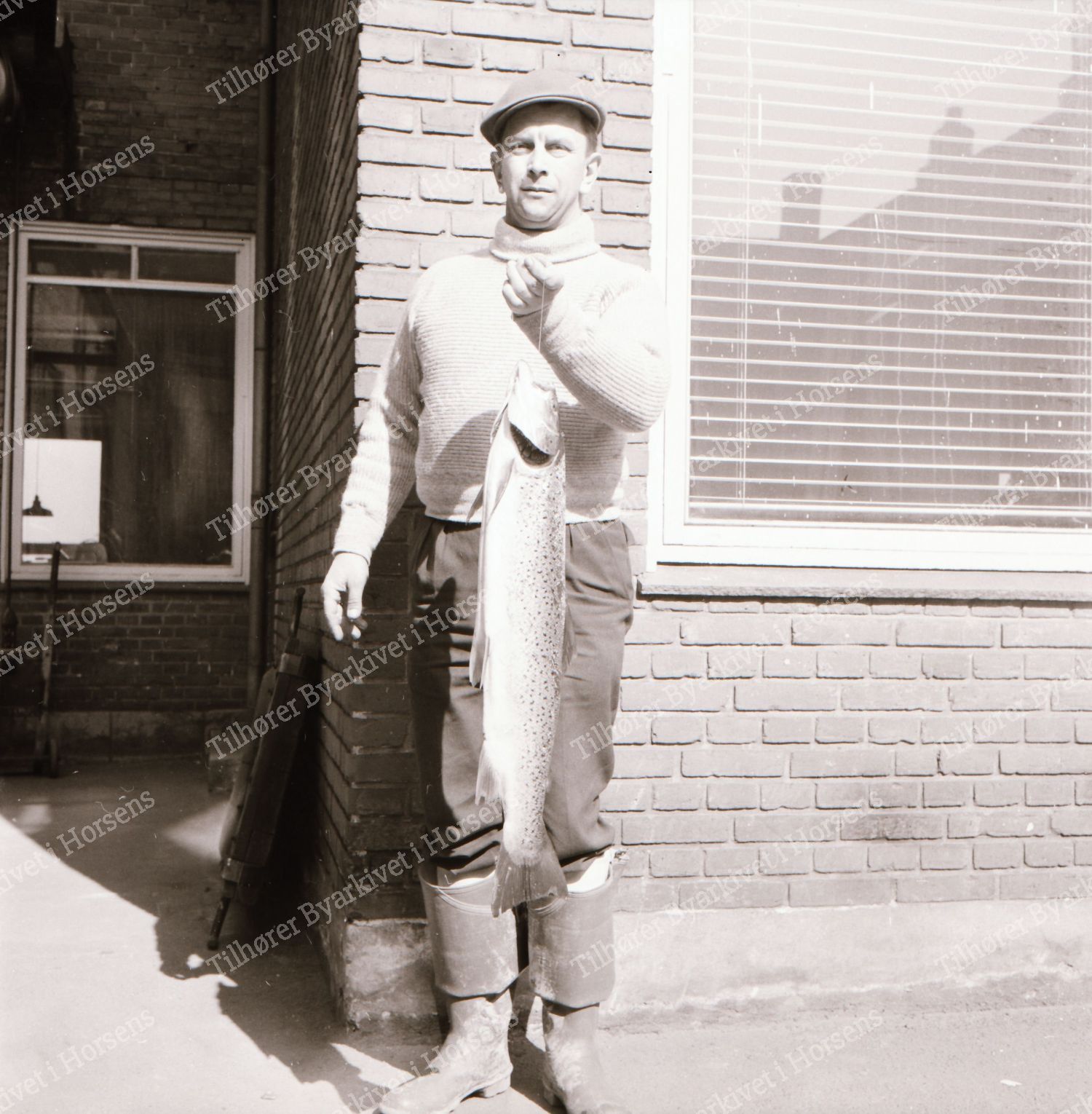 14/64. Typograf Orla Olesen, Fredericiagade 37 fangede ørred på 8 pund. HF 6/4-64.