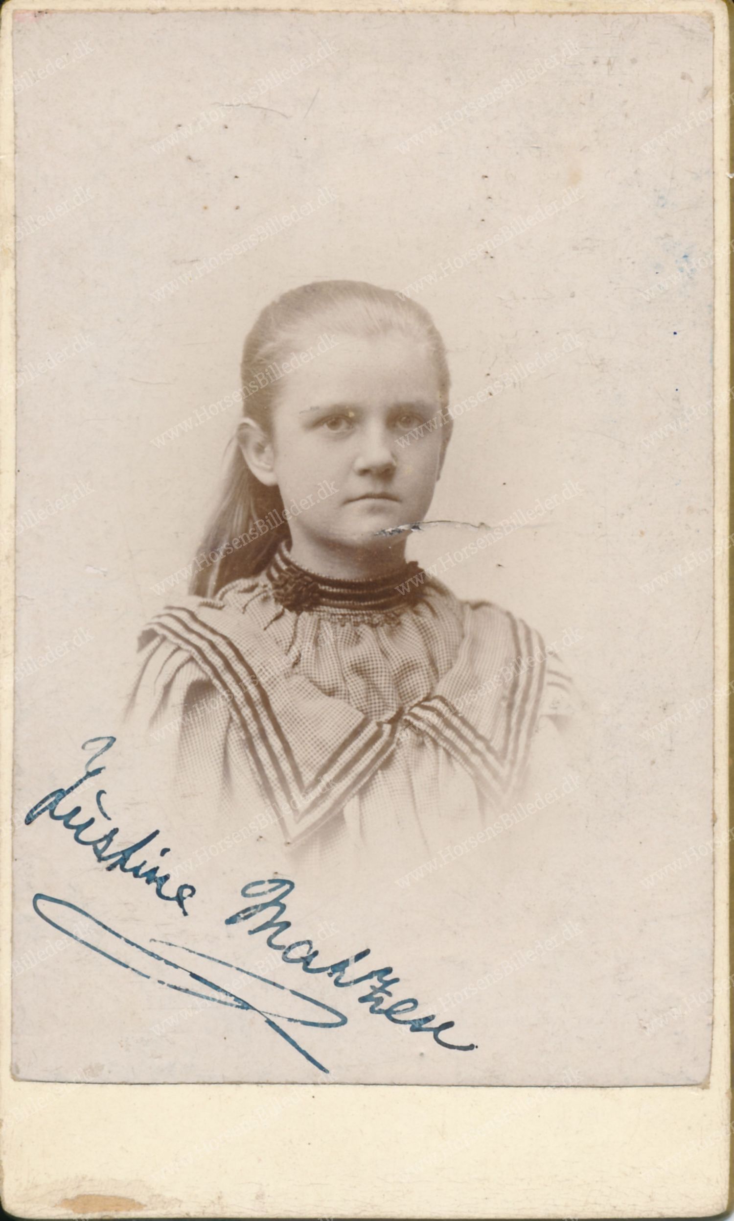 Justine Matzen. Maries bekendskab. Samme familie 0010. Datter af Herredsfuldmægtig A. Matzen. Udlåner Jan Østergaard Andersen.
