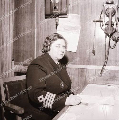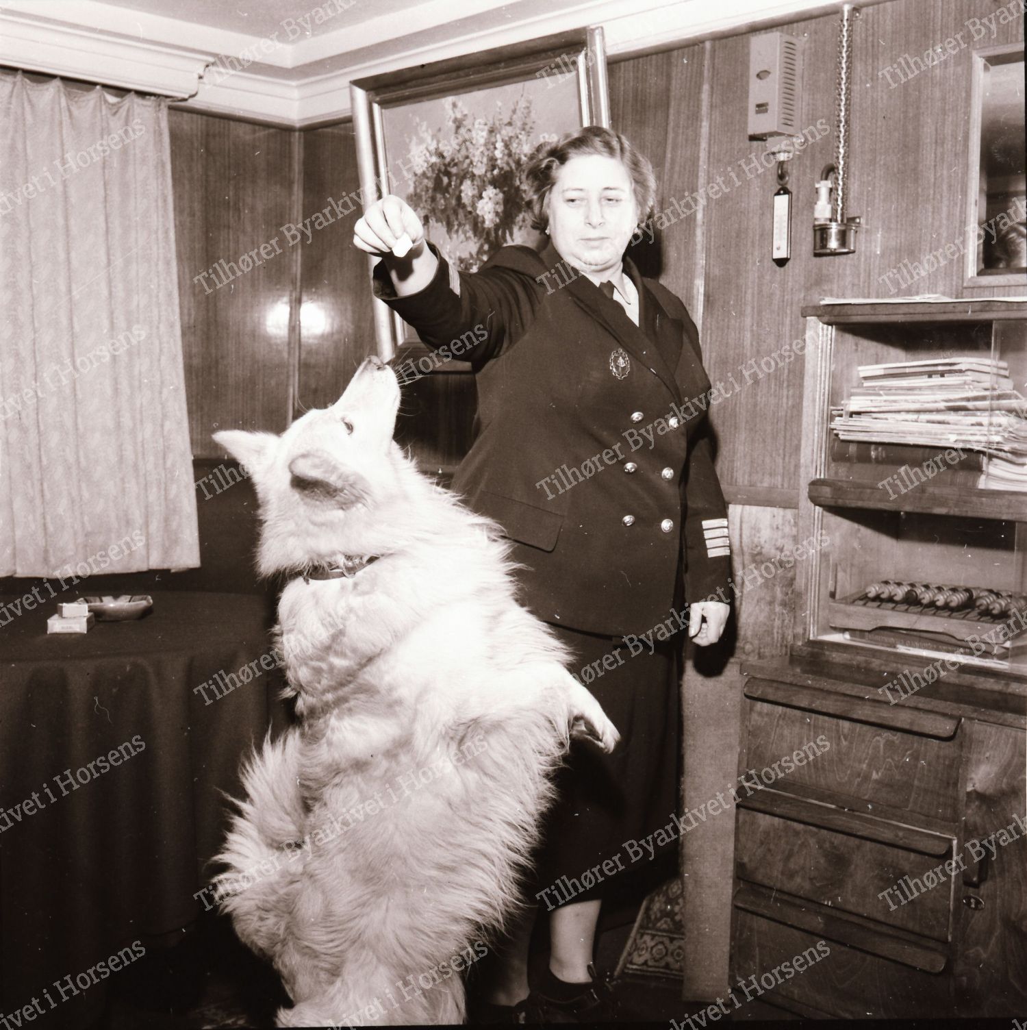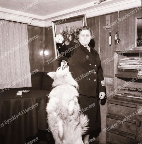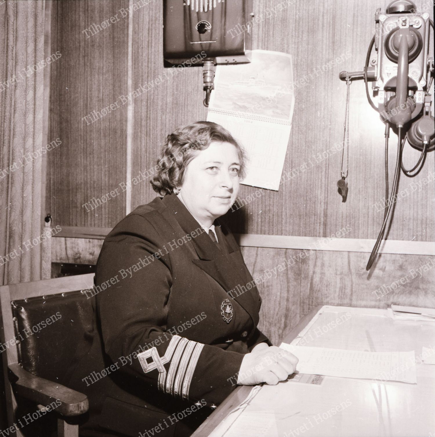 1/64. Sovjets eneste kvindelige kaptajn. Eugenia Gorlenko manøvrerede sit 4000 tons fragtskib "Suntaz" til kaj i Horsens. HF 3/1-64.