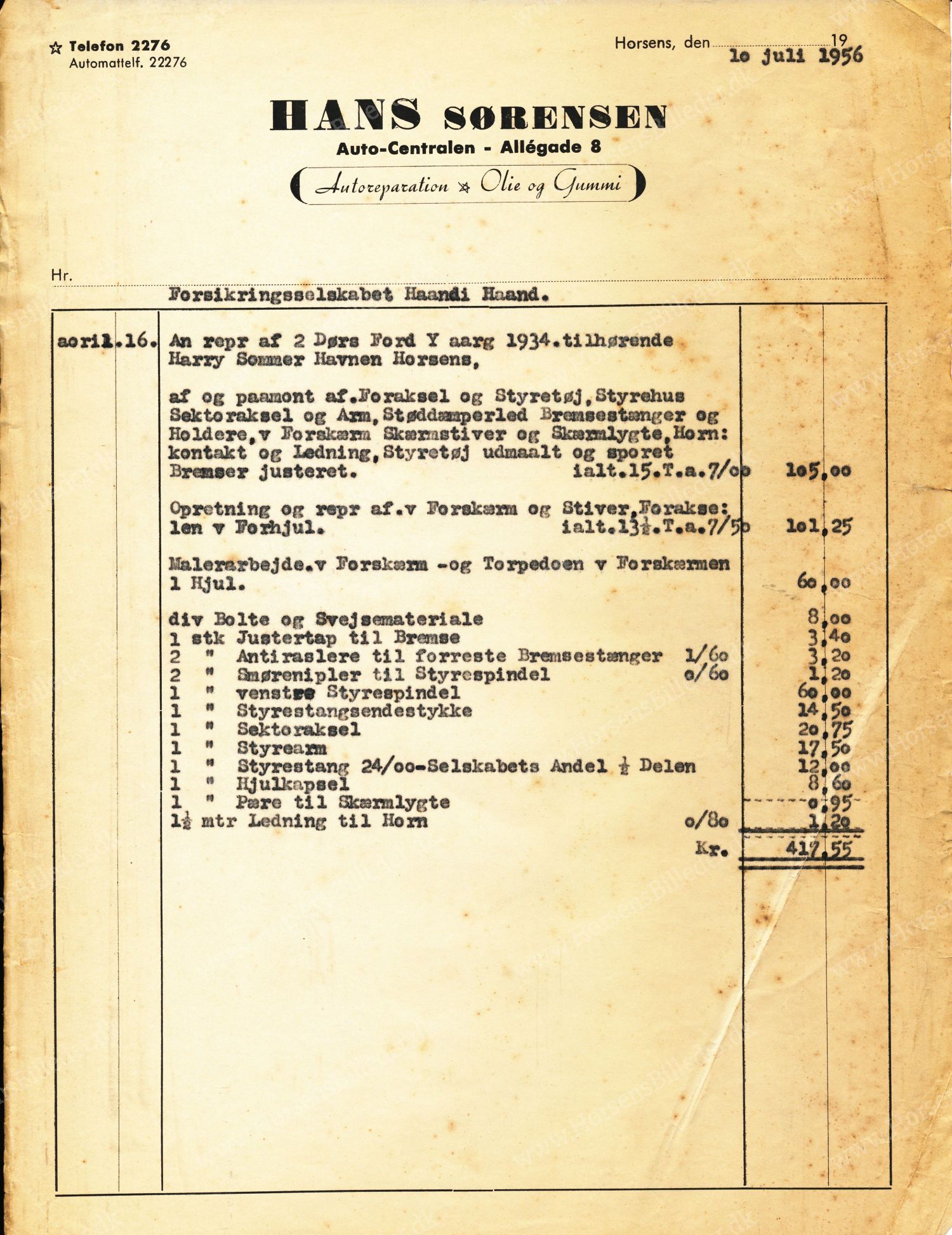 Faktura fra Auto-Centralen til Harry Sommer. Udlåner Jan Østergaard Andersen.