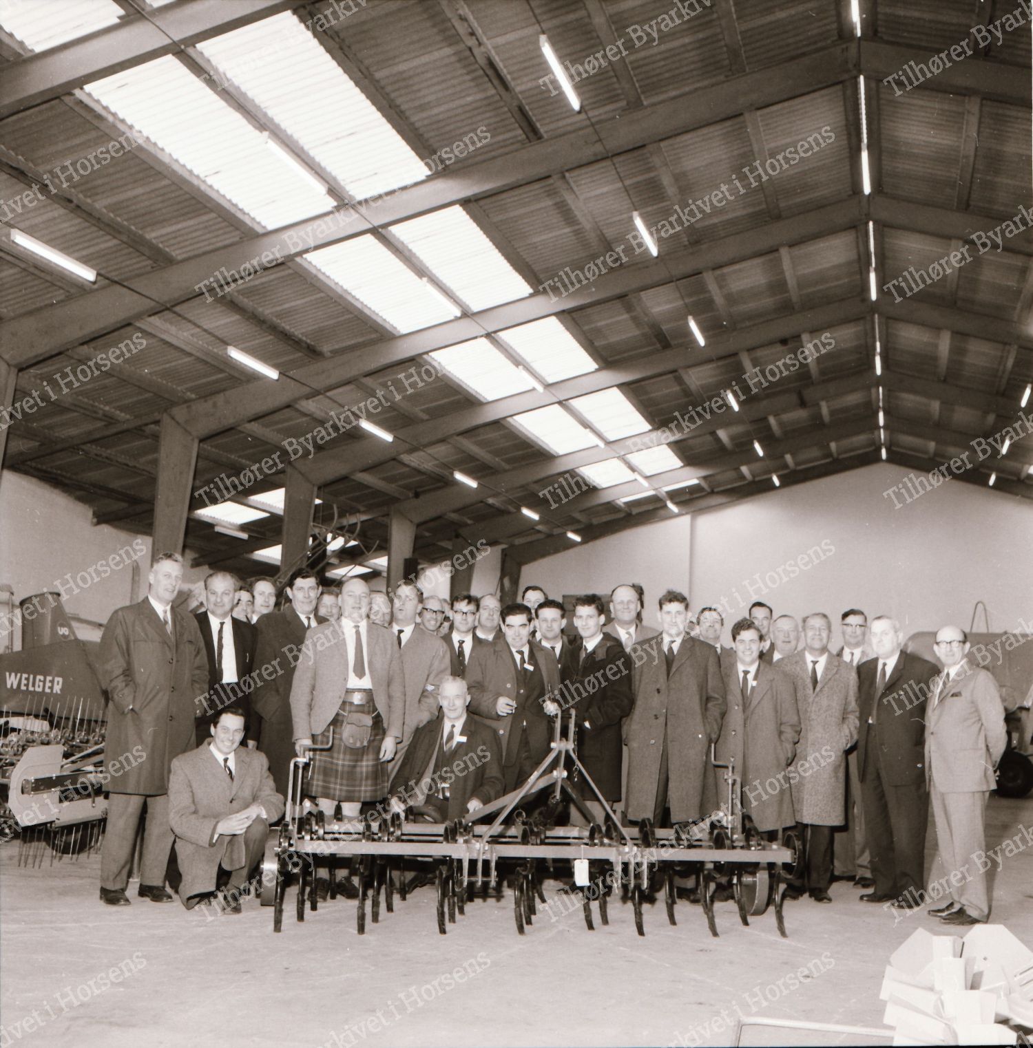 47/64. 30 britiske farmere og maskinhandlere på besøg i Horsens og Horsenslandet. Her fotograferet hos Horsens Maskinforretning. HF 19/11-64.