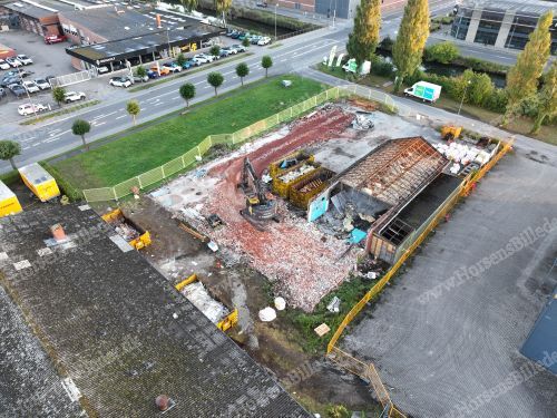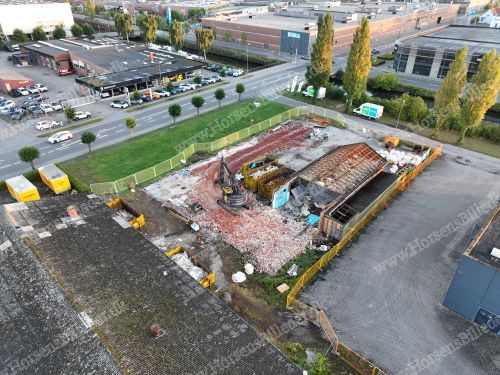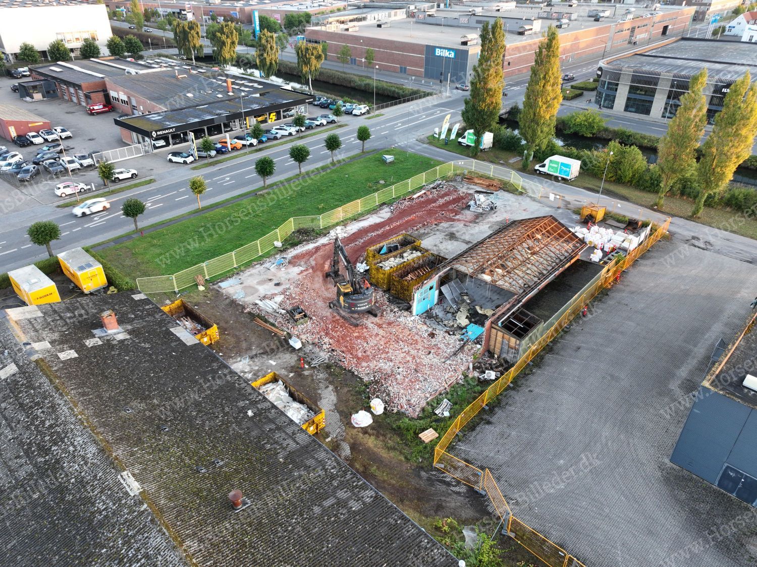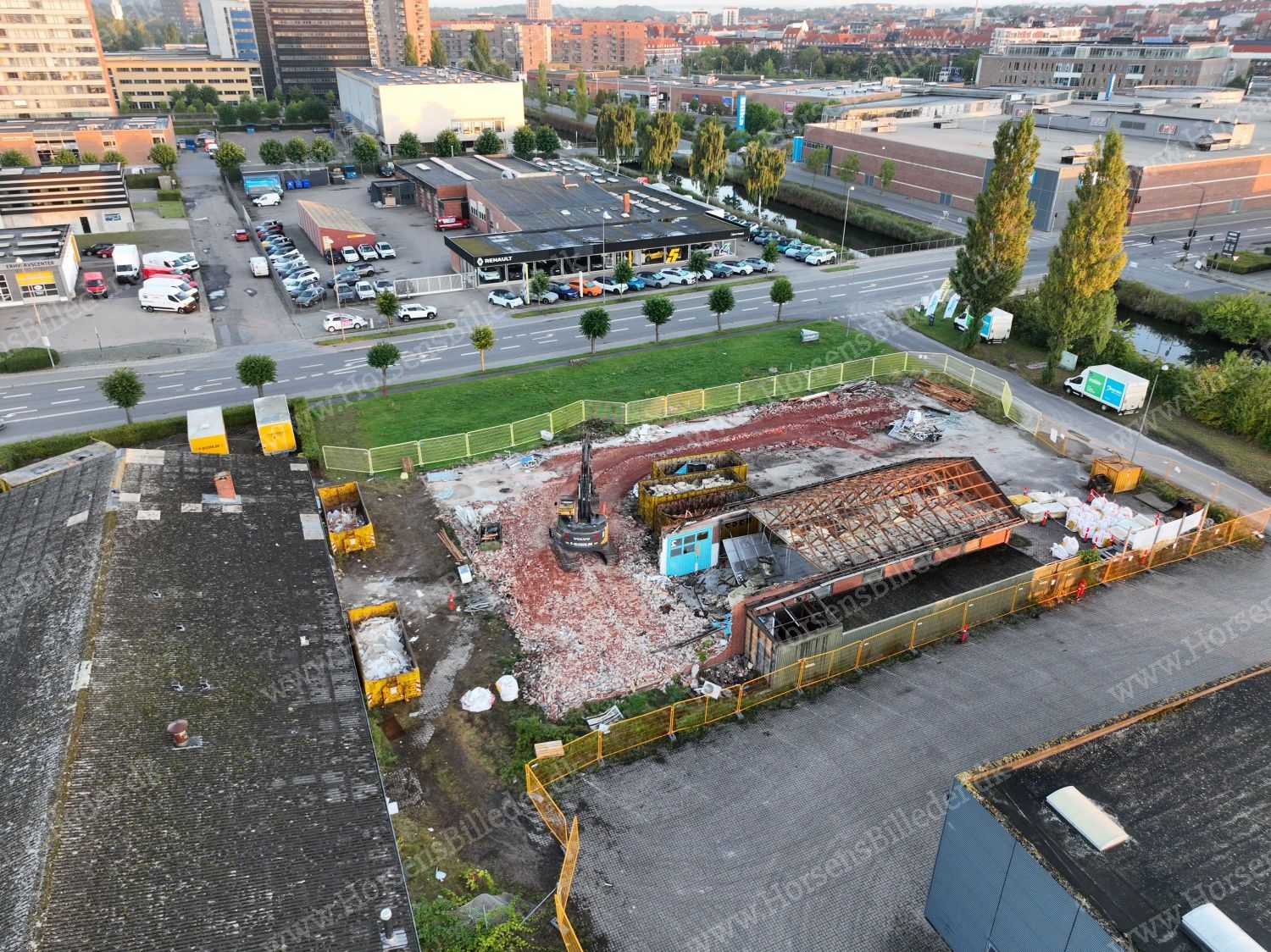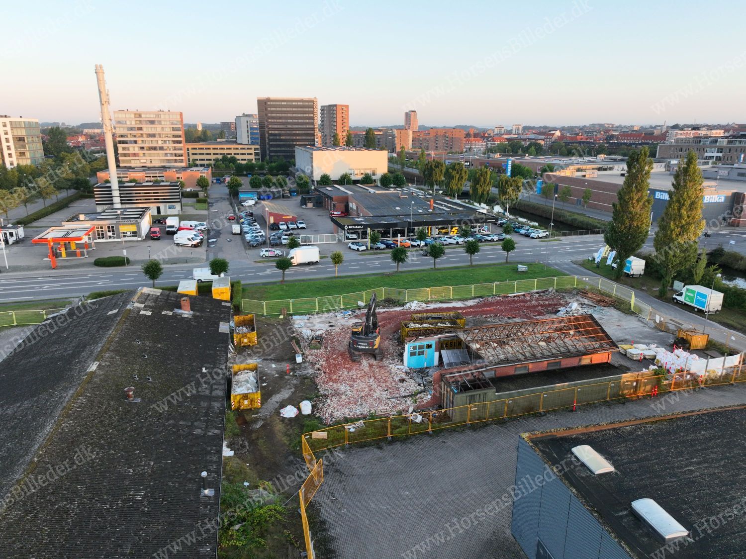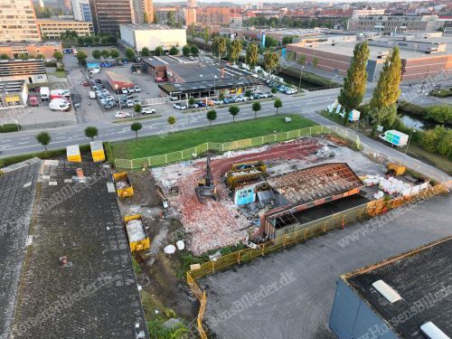 P. Olesen har startet nedrivning af bygningerne. Her skal Sydbank bygge ny domicilejendom. Den 6/9-2025. Udlåner Jan Østergaard Andersen.