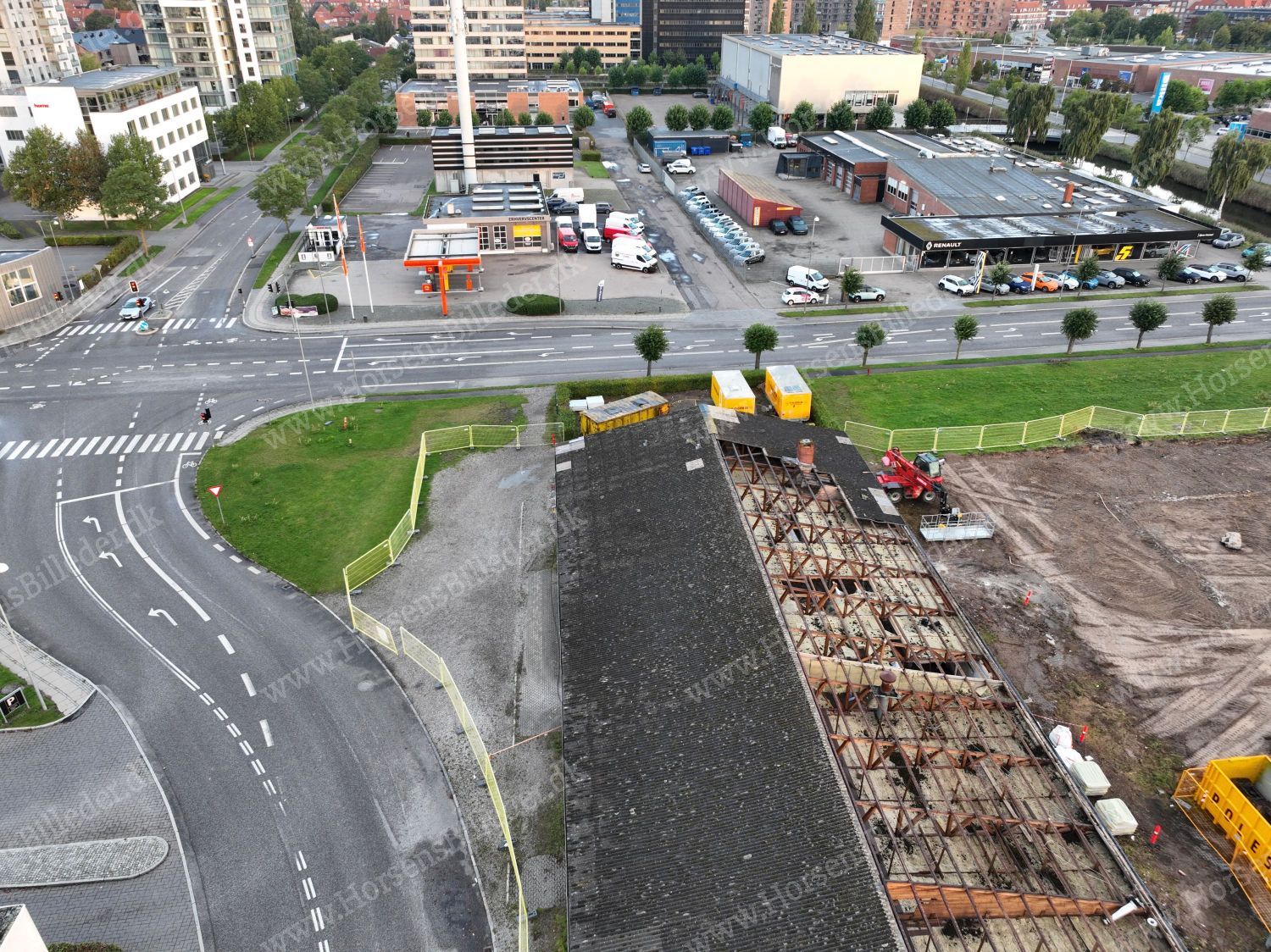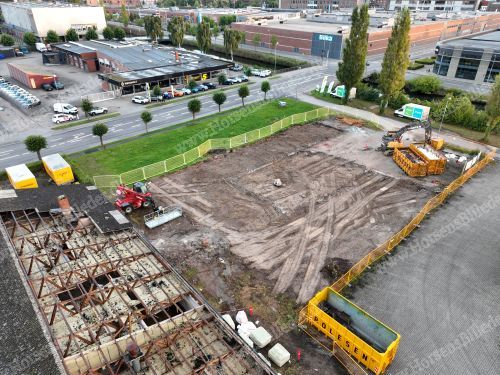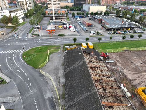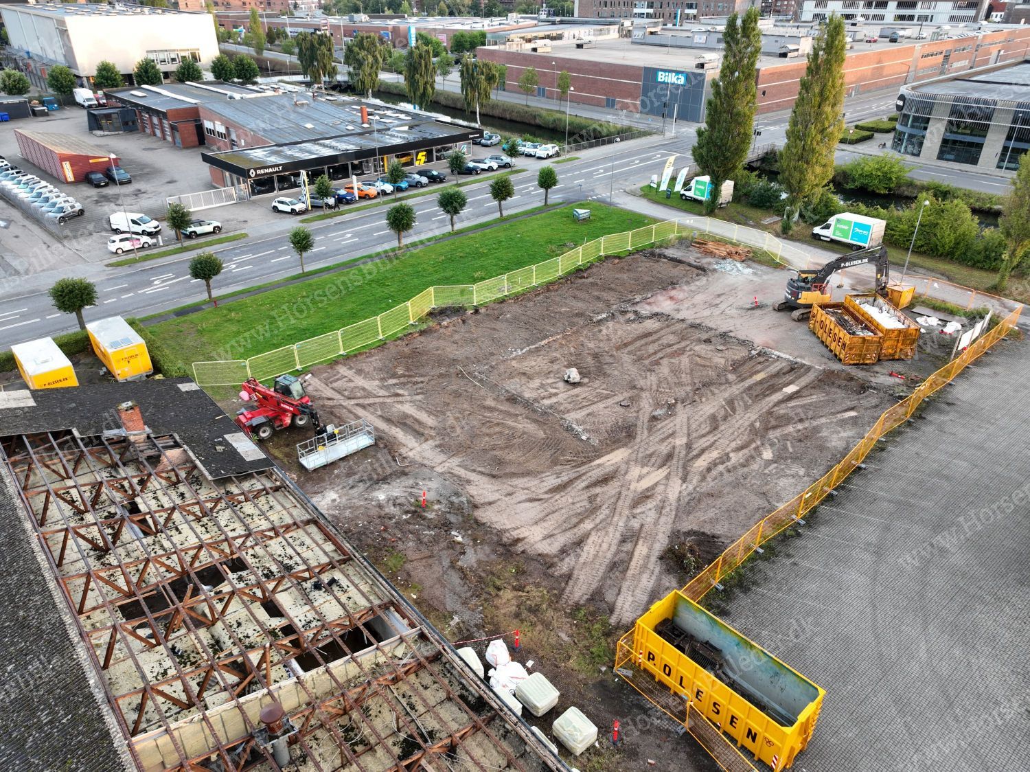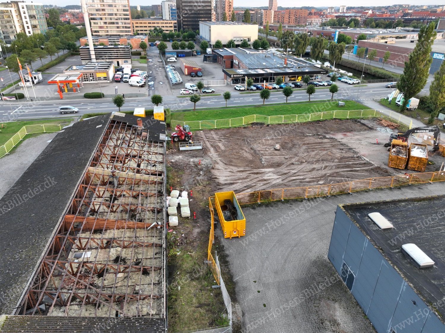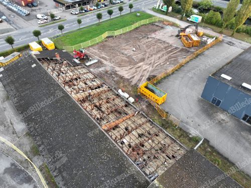 P. Olesen har startet nedrivning af bygningerne. Her skal Sydbank bygge ny domicilejendom. Den 13/9-2025. Udlåner Jan Østergaard Andersen.