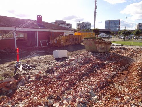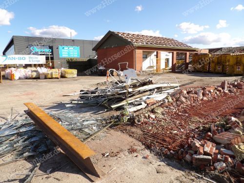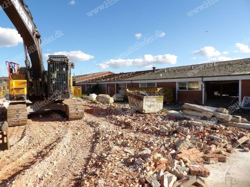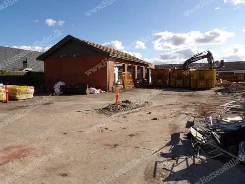 P. Olesen nedriver bygningerne. Her skal Sydbank bygge ny domicilejendom. Den 6/9-2025. Udlåner John Holgersen.
