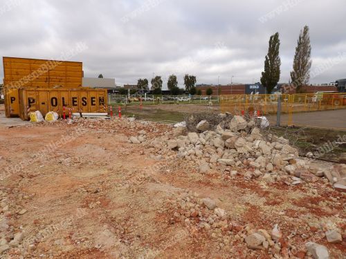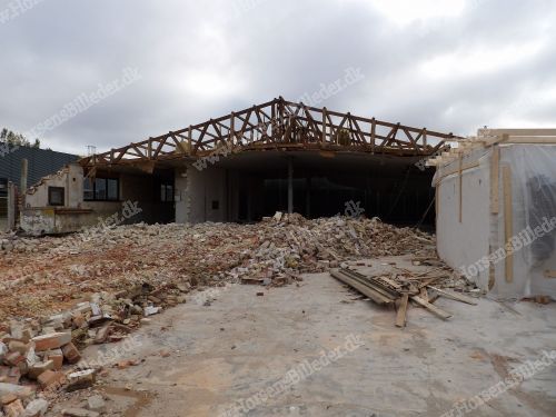 P. Olesen nedriver bygningerne. Her skal Sydbank bygge ny domicilejendom. Den 11/10-2025. Udlåner John Holgersen.