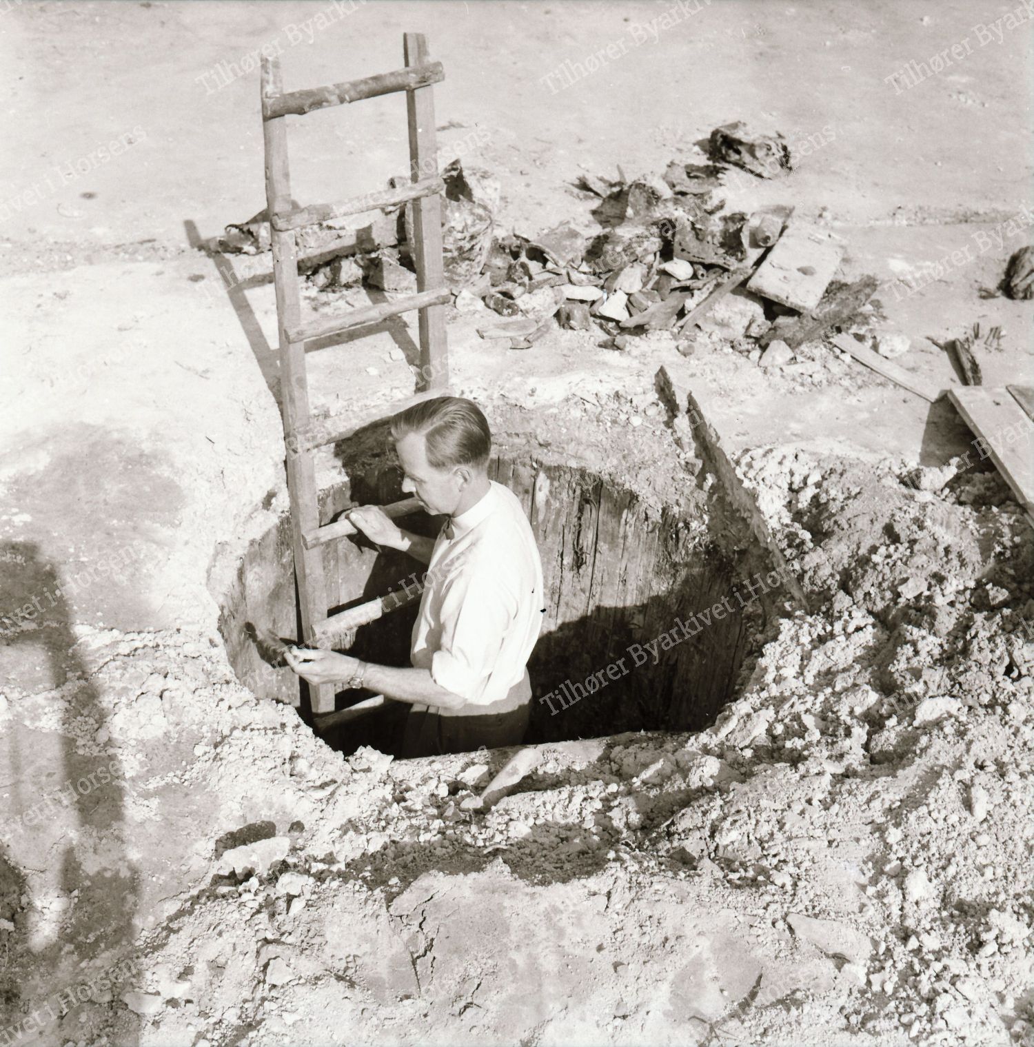22/64. Interessante fund i den gamle købmandsgård i Hospitalsgade efter storbranden. HF 29/5-64.