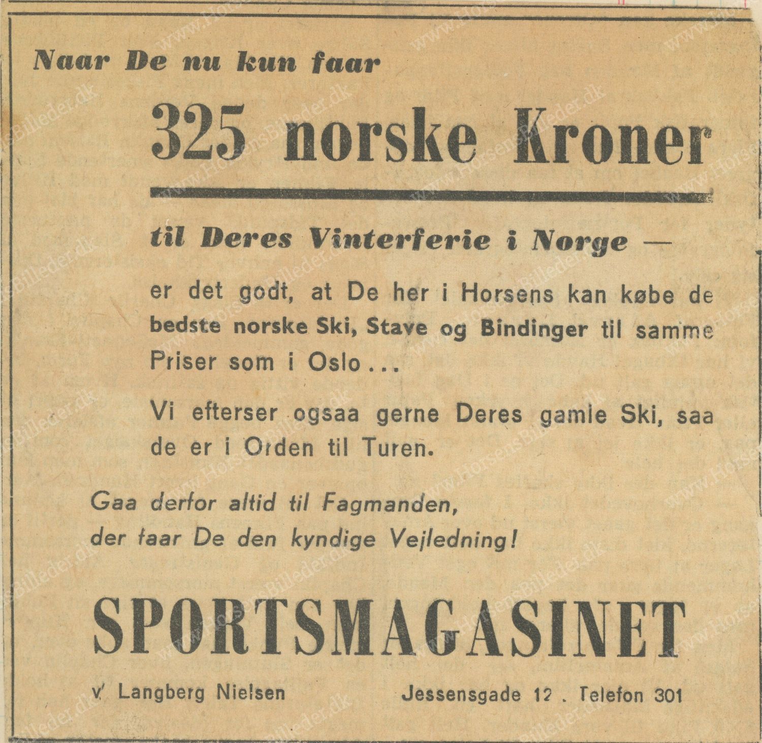 Annonce den 6/12-1947 i Horsens Folkeblad. Udlåner Aase Langberg.