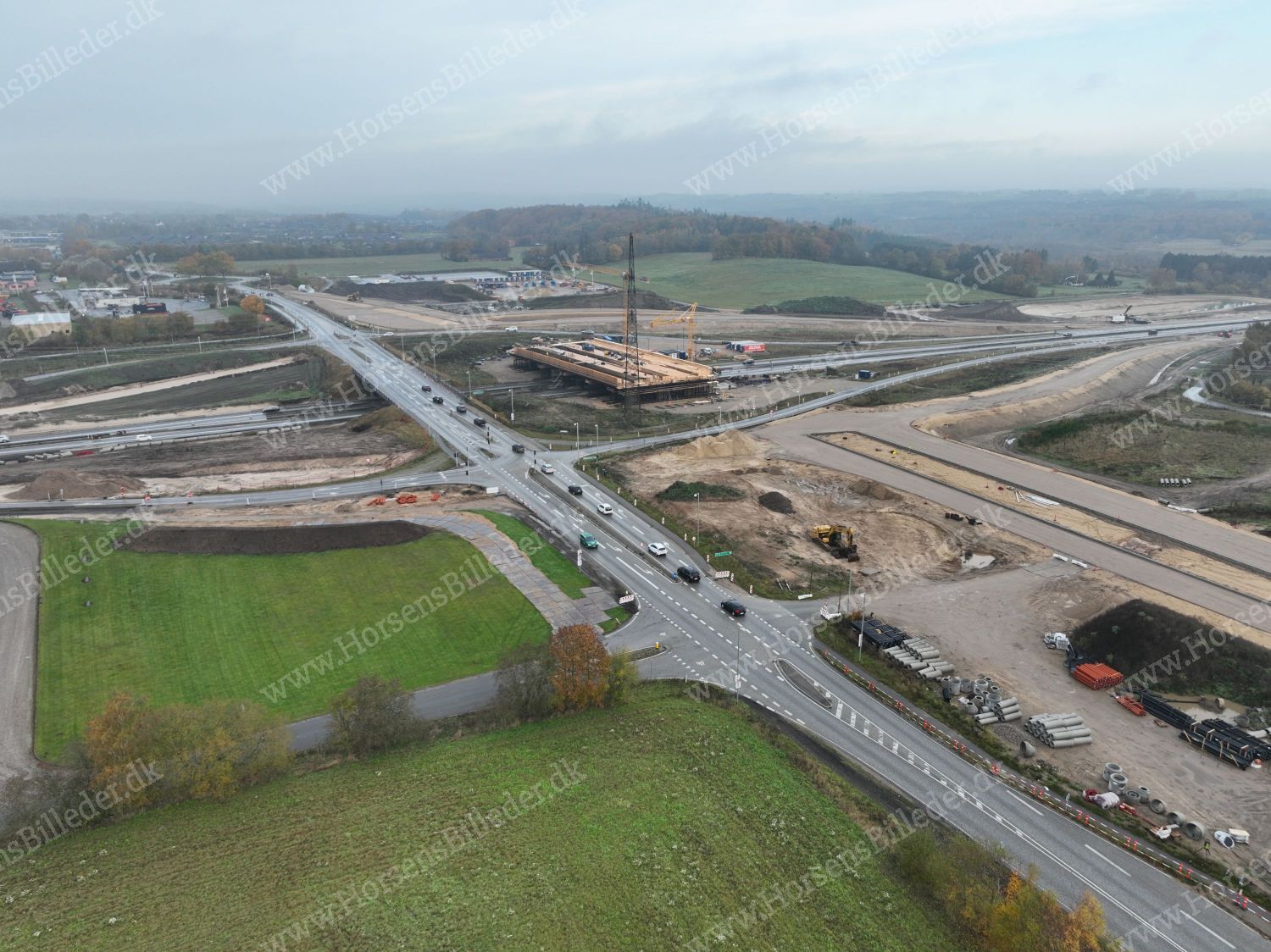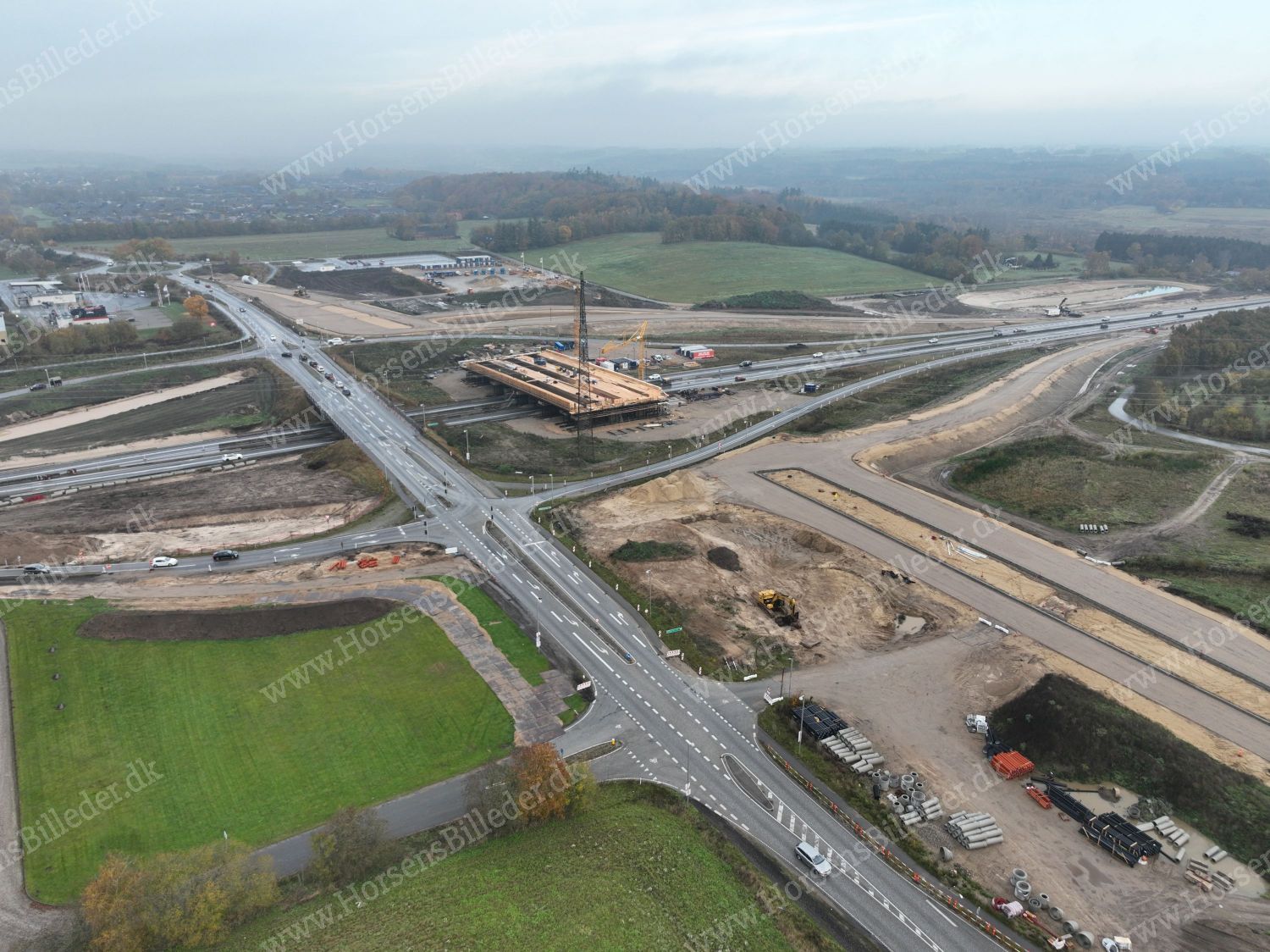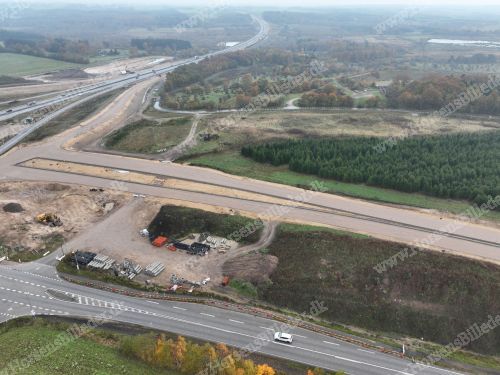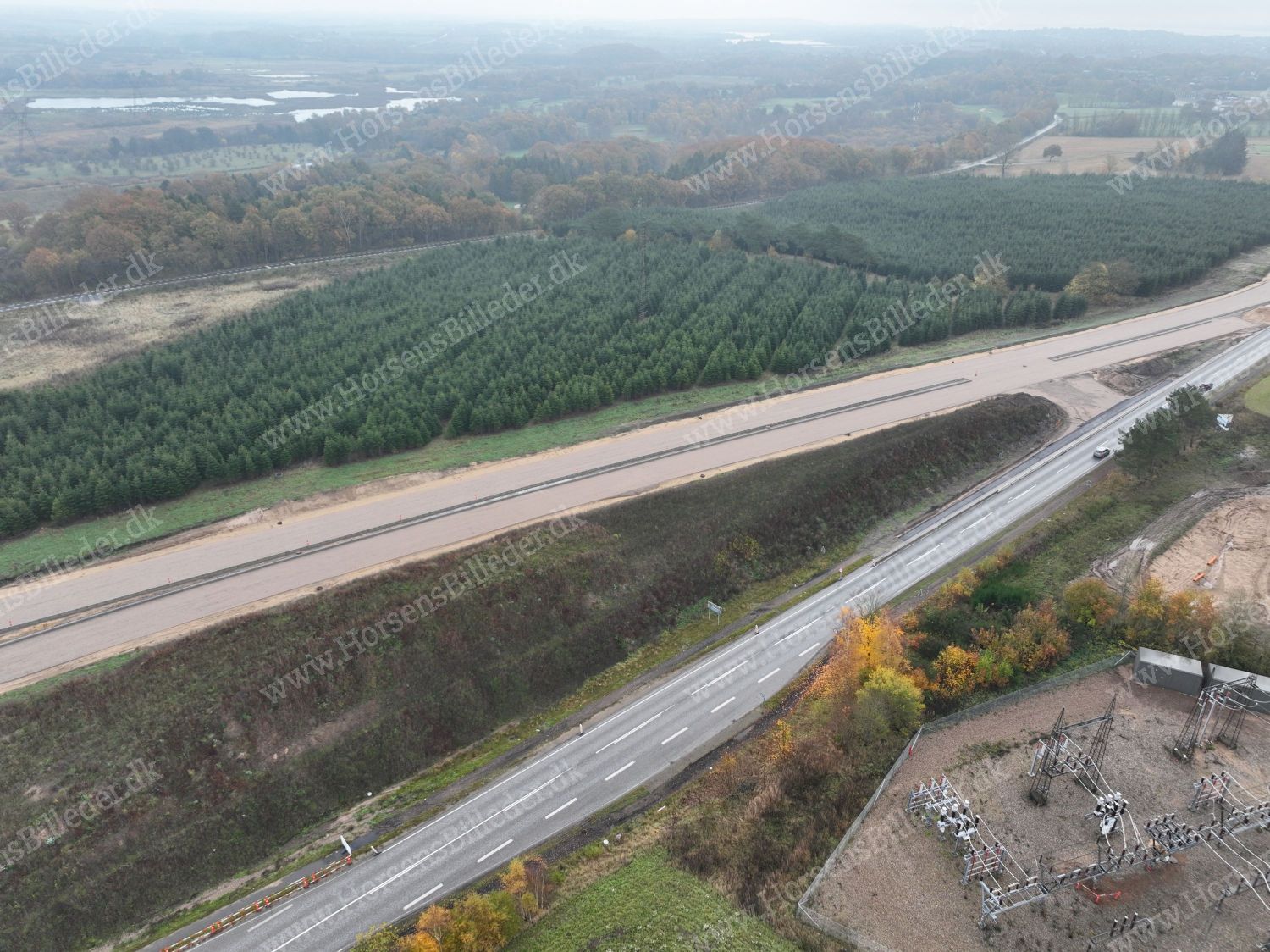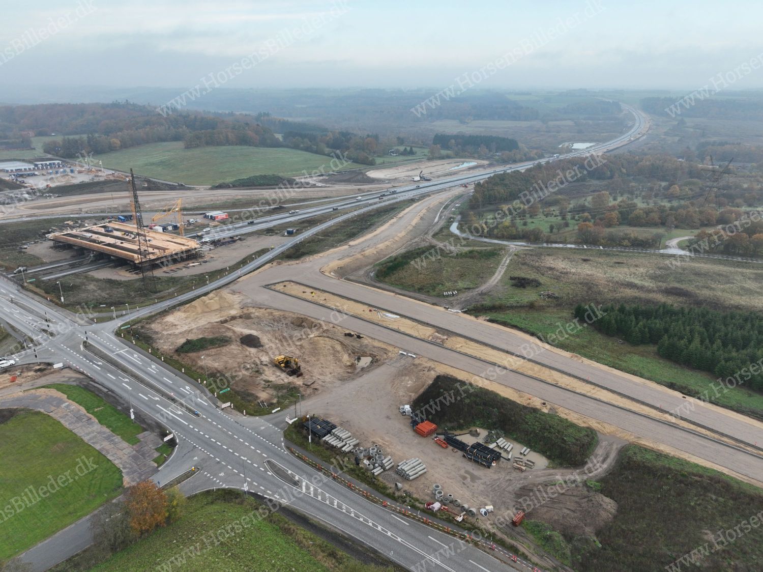 Motorvejen og Silkeborgvej udvides. Set fra Kærgårdsvej ( Hedder nu Rosenkrantzvej ). Den 1/11-2025. Udlåner Jan Østergaard Andersen.