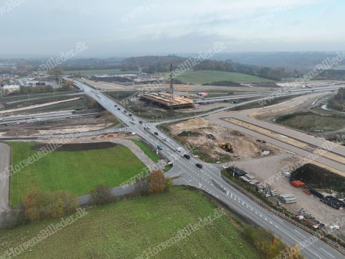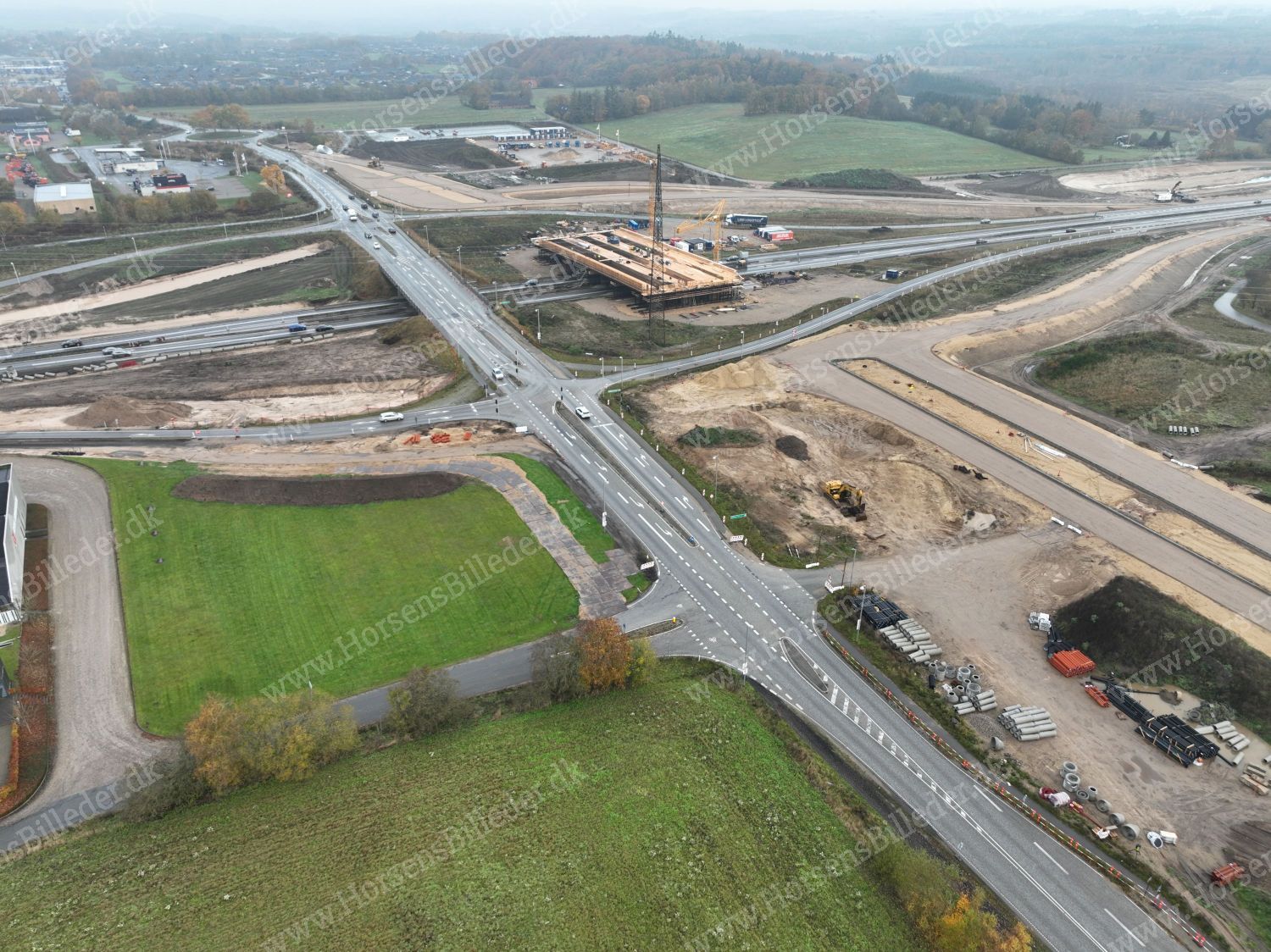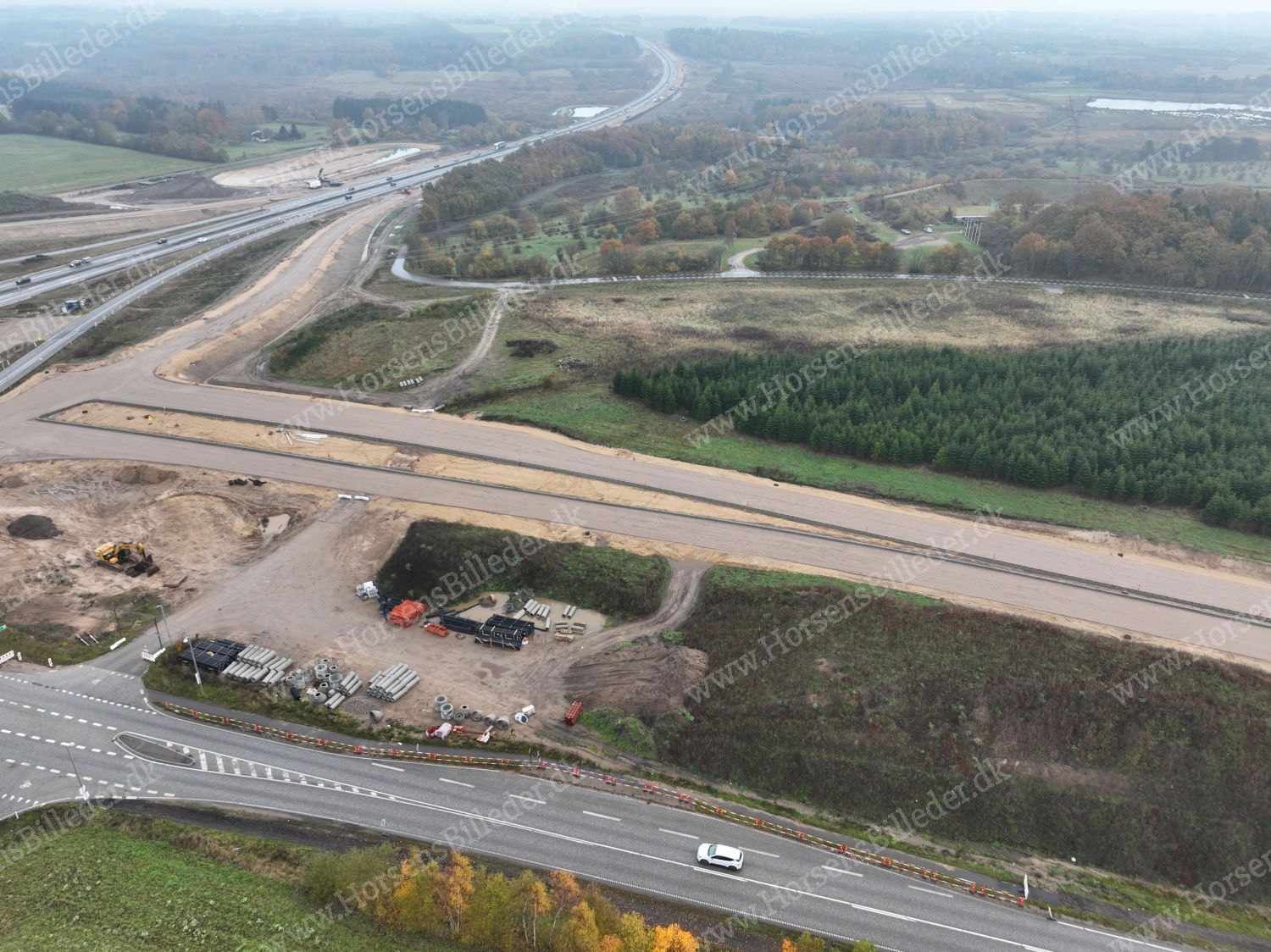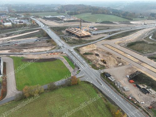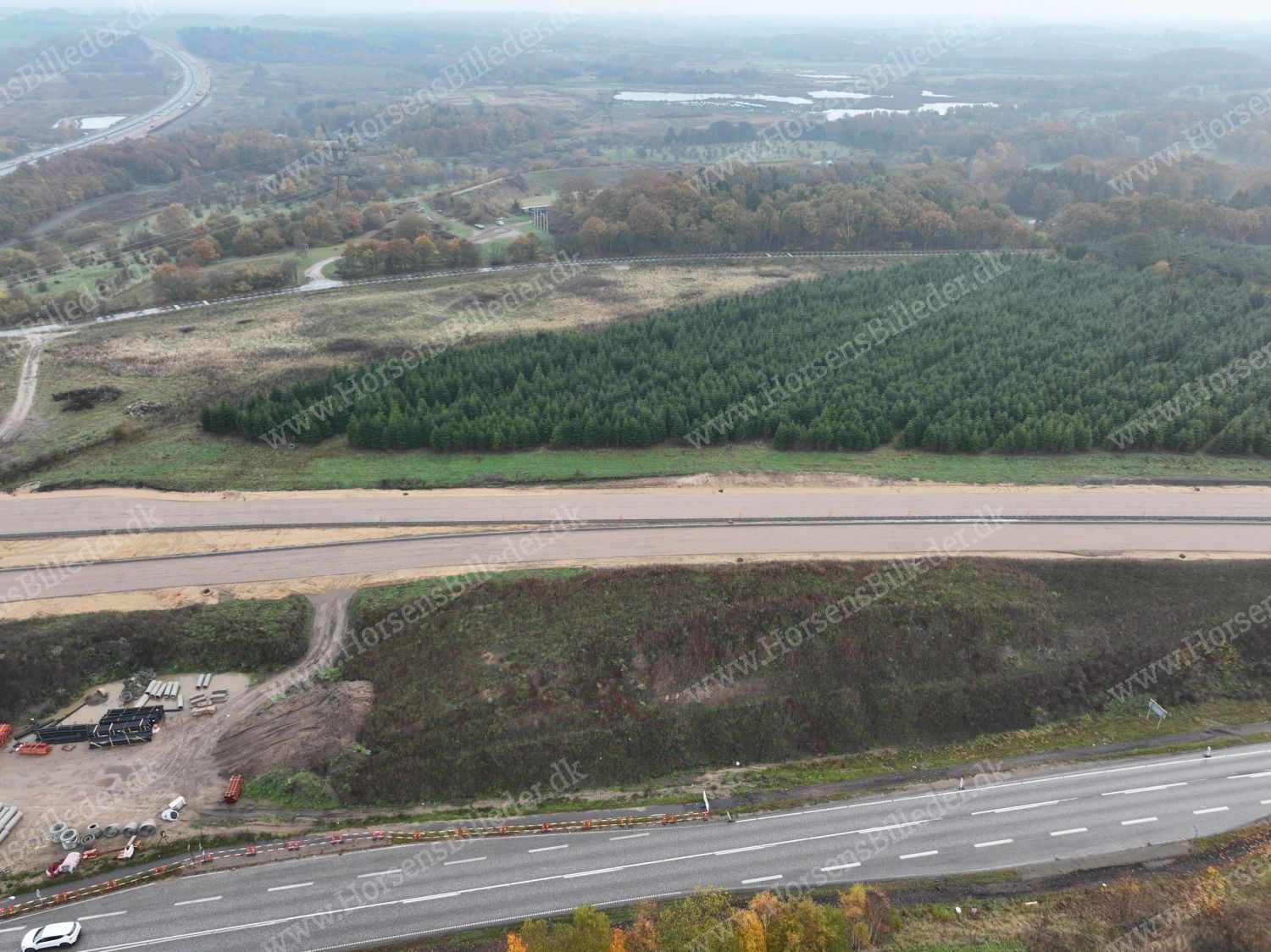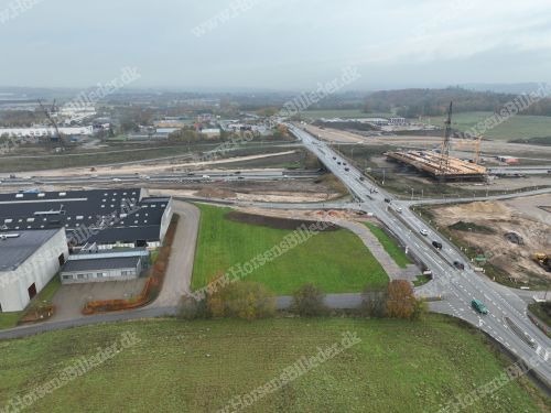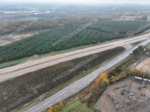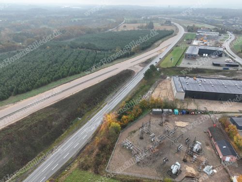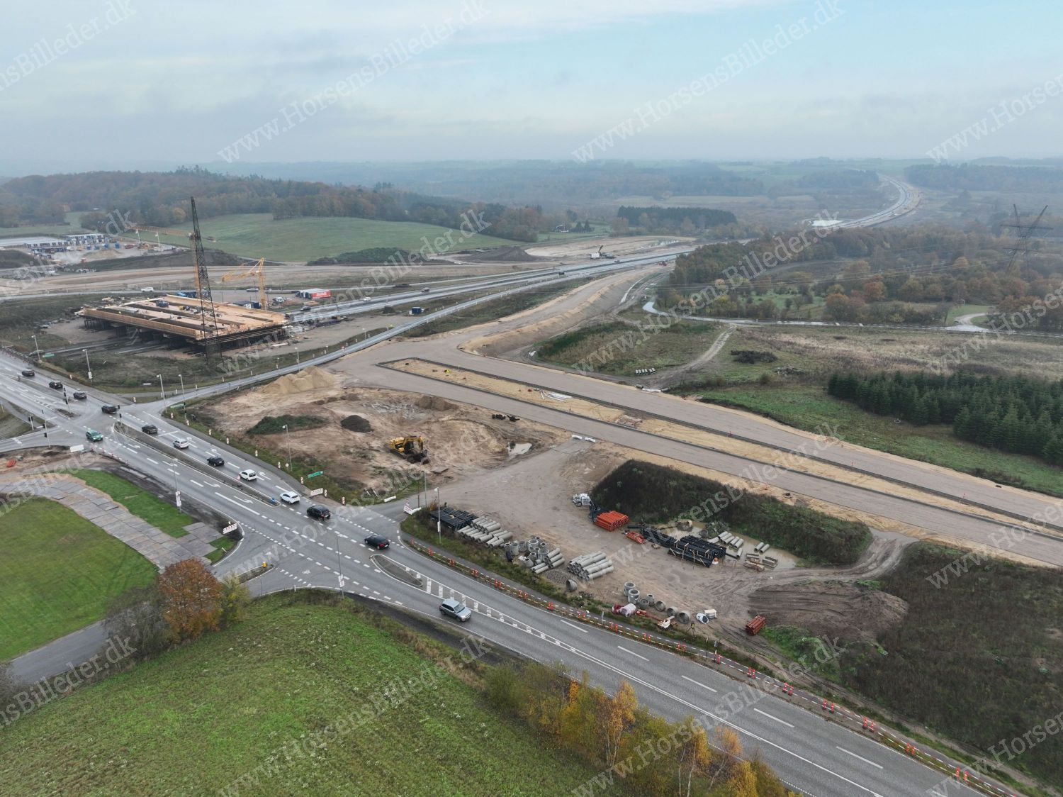 Motorvejen og Silkeborgvej udvides. Set fra Kærgårdsvej ( Hedder nu Rosenkrantzvej ). Den 1/11-2025. Udlåner Jan Østergaard Andersen.
