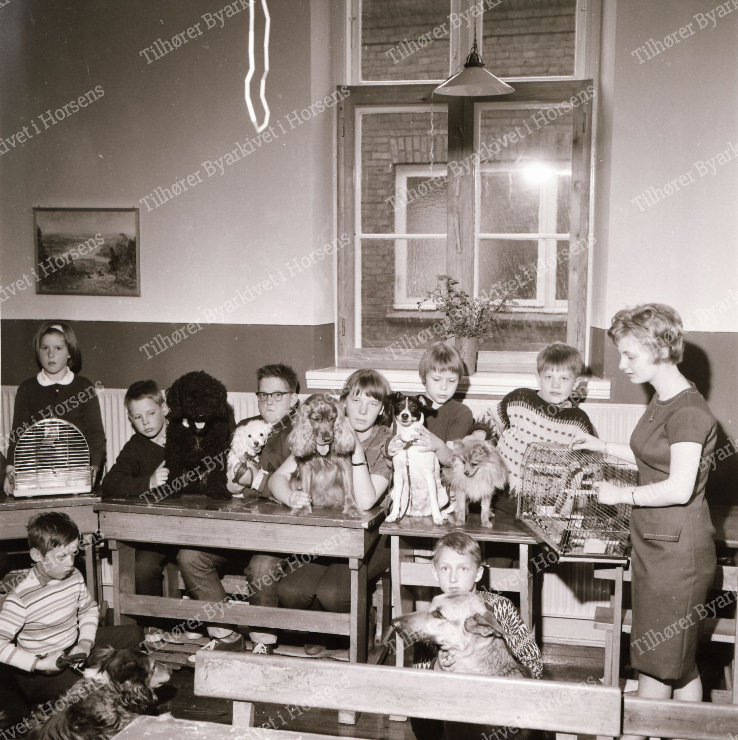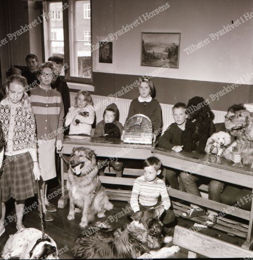 18/64. Dyr på skolebænken på Sct. Ibs skole. HF 4/5-64.