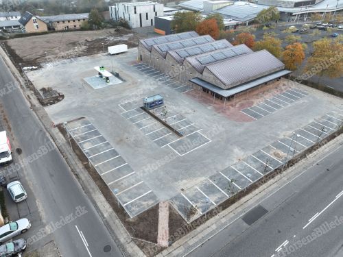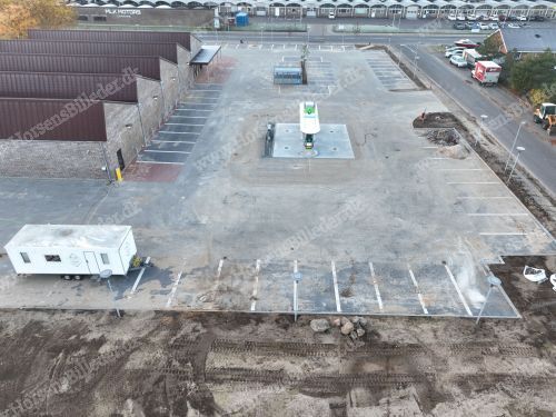 Her skal bygges en Rema 1000 butik på 1200 m2, 73 parkeringspladser, samt et Go`on tankanlæg. Byggeriet starter omkring 1. april og efter planen skal det stå færdig i uge 41. Totalentreprisen udføres af Tømrerfirmaet Struer. Der var rejsegilde den 19/8-25 og butikken åbner den 6/11-2025. Den 19/10-2025. Udlåner Jan Østergaard Andersen.
