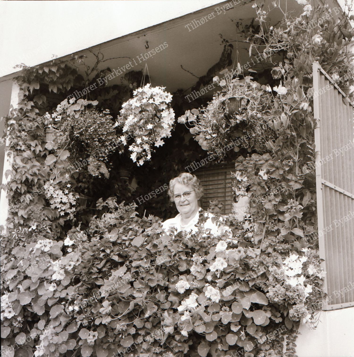 33/64. Fru Olga Andersen, Krystalgade 2A vandt den årlige altankonkurrence. HF 13/8-64.