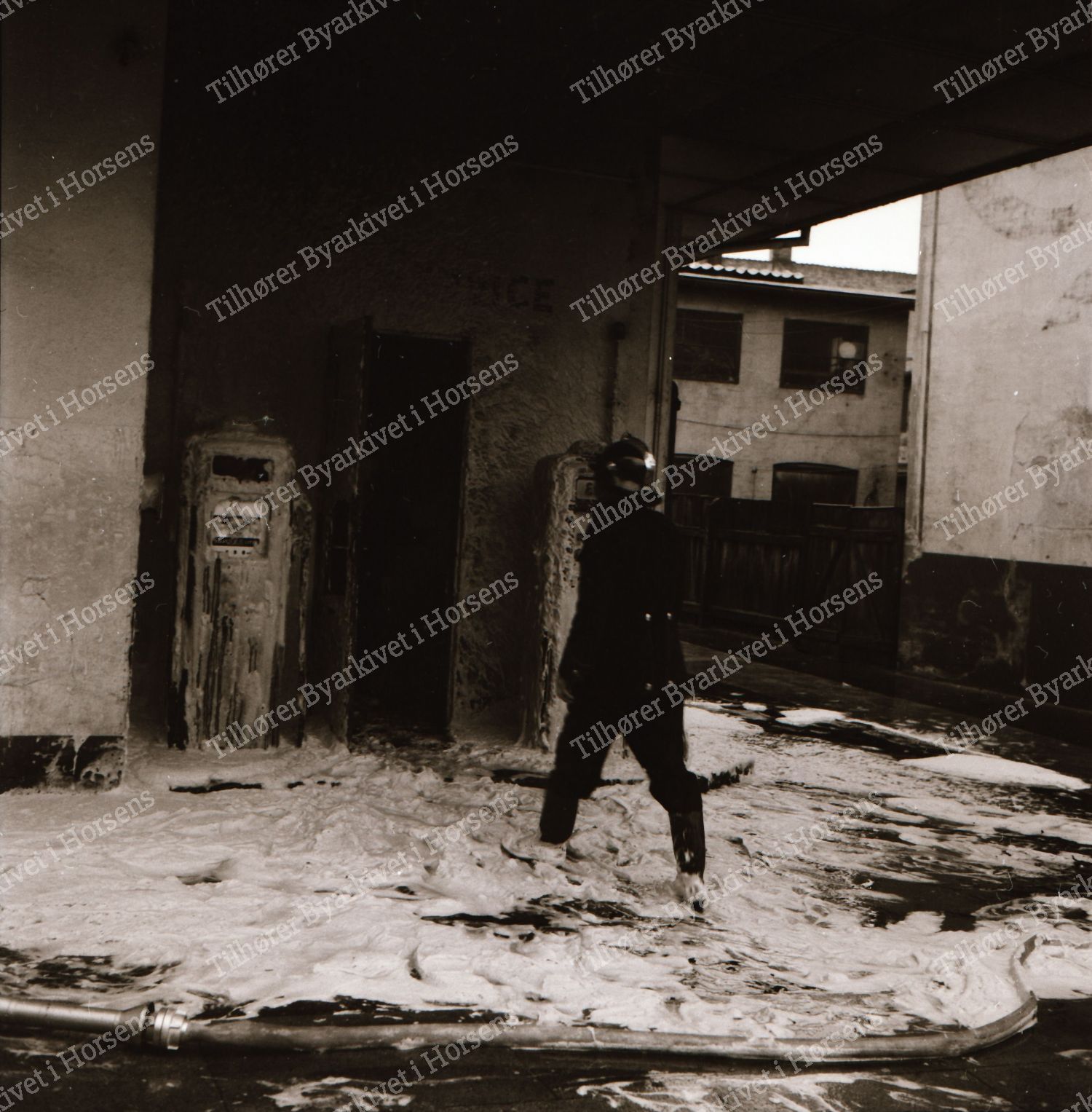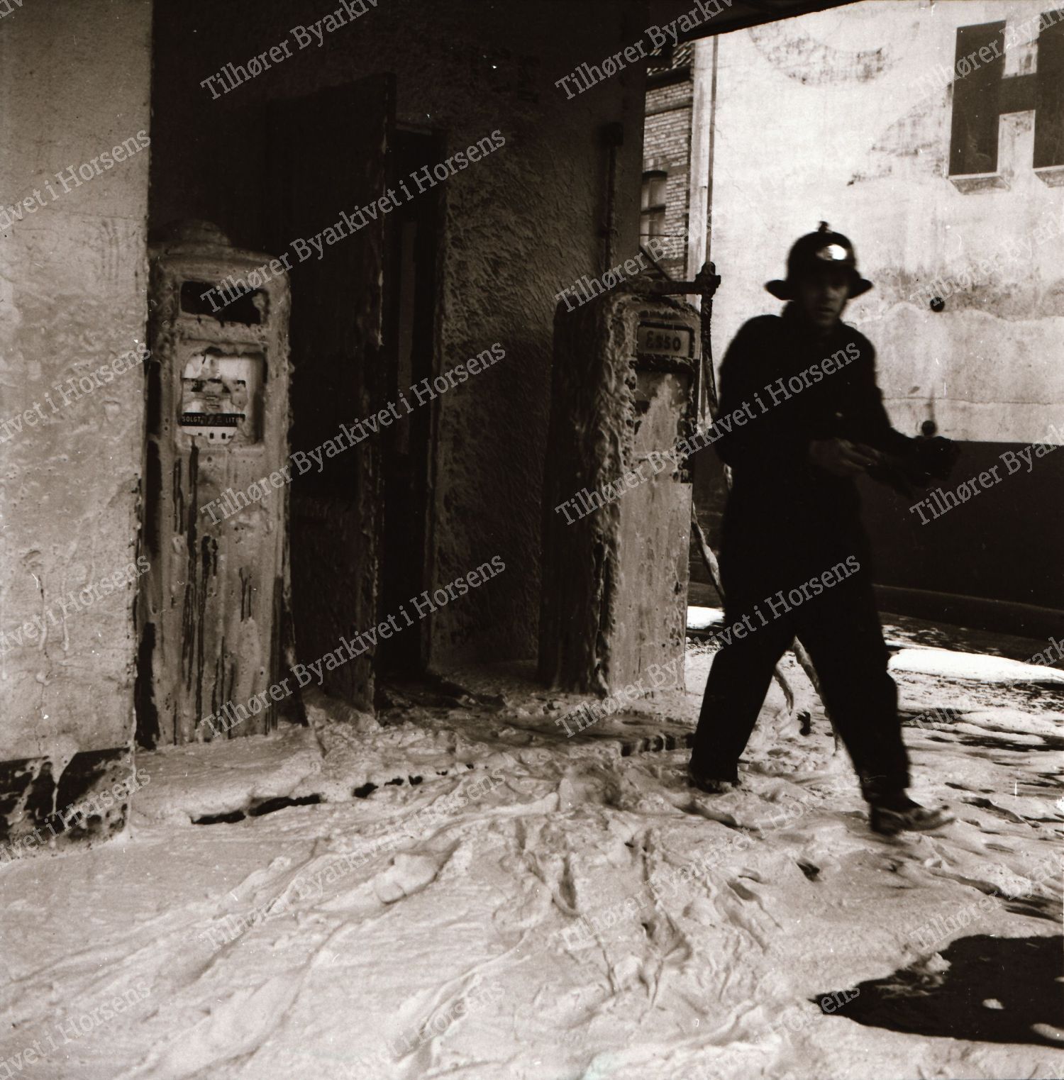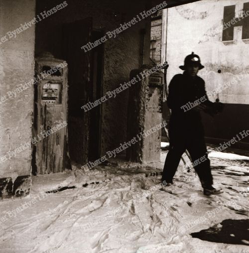 47/64. Automobilforhandler Søren Slemming pådrog sig svære forbrændinger ved en benzinbrand på Mælketorvet i går. HF 20/11-64.