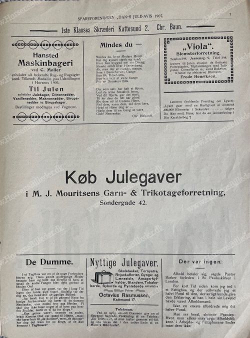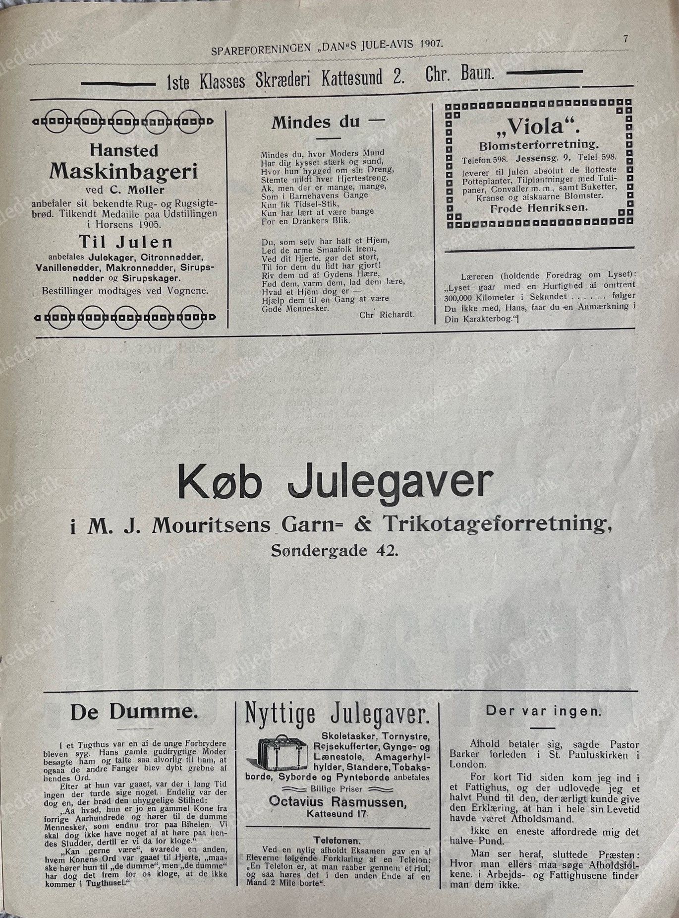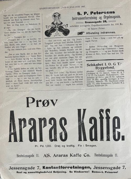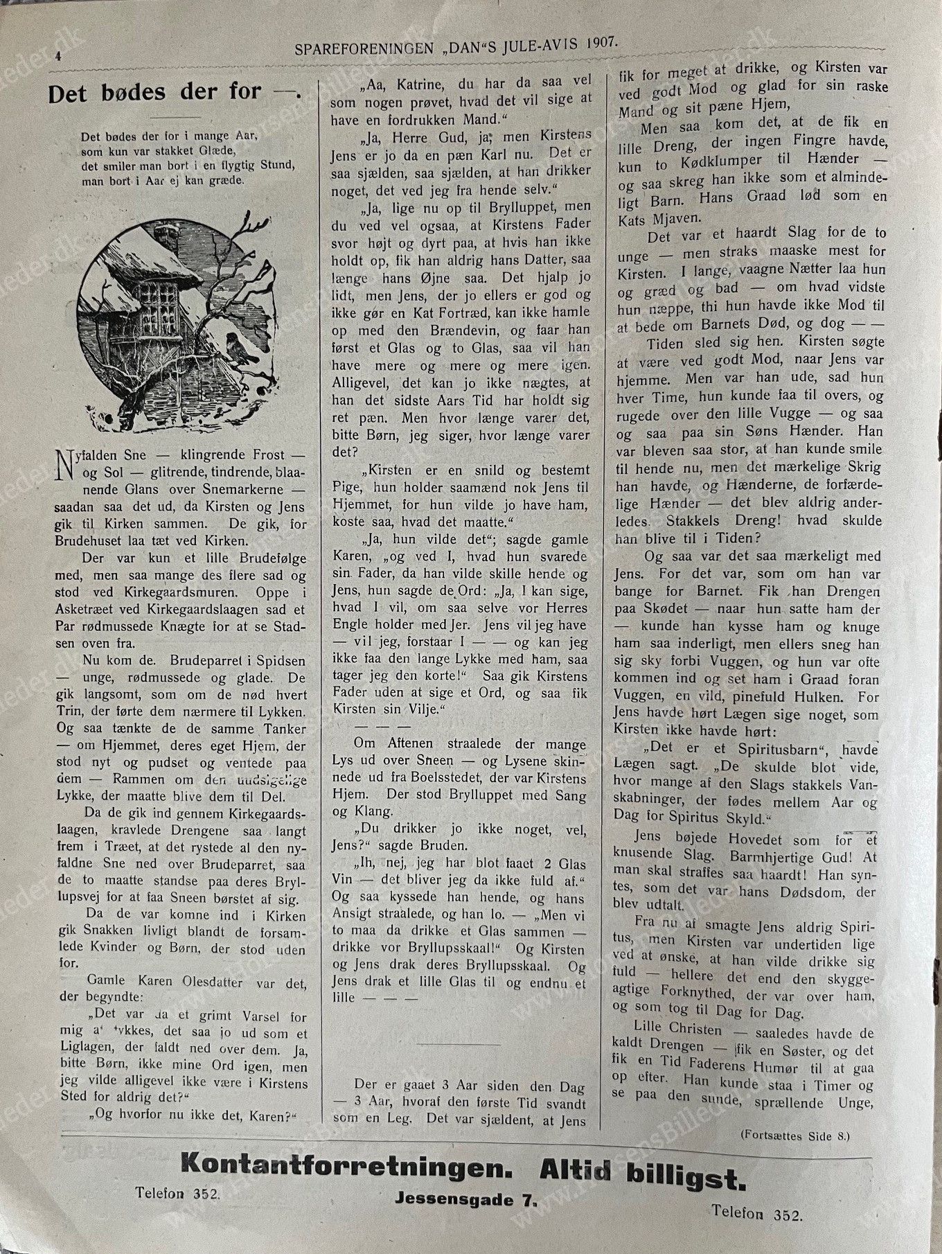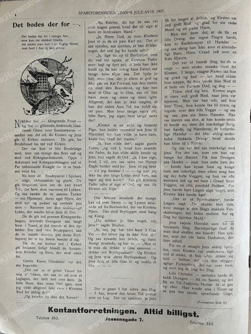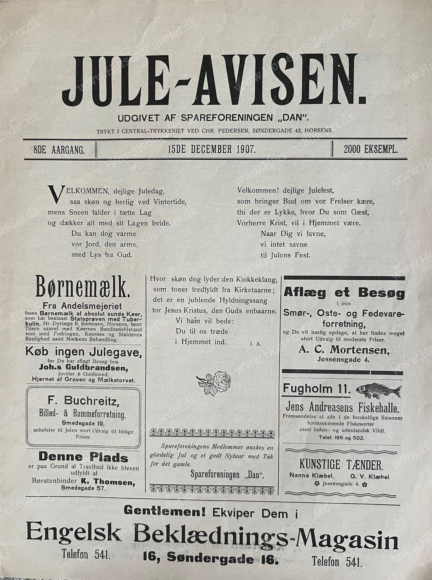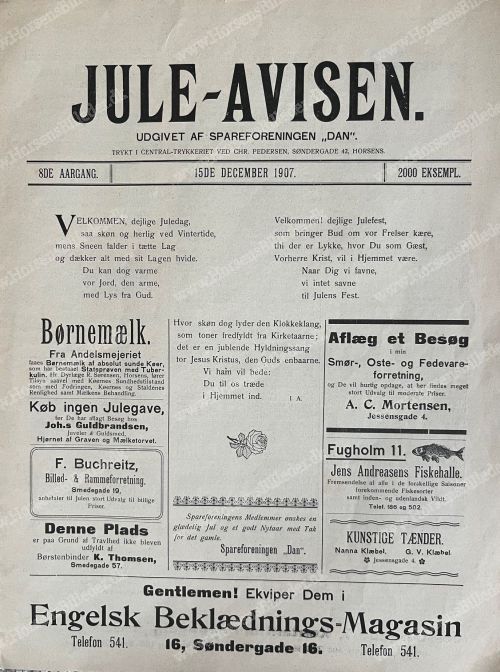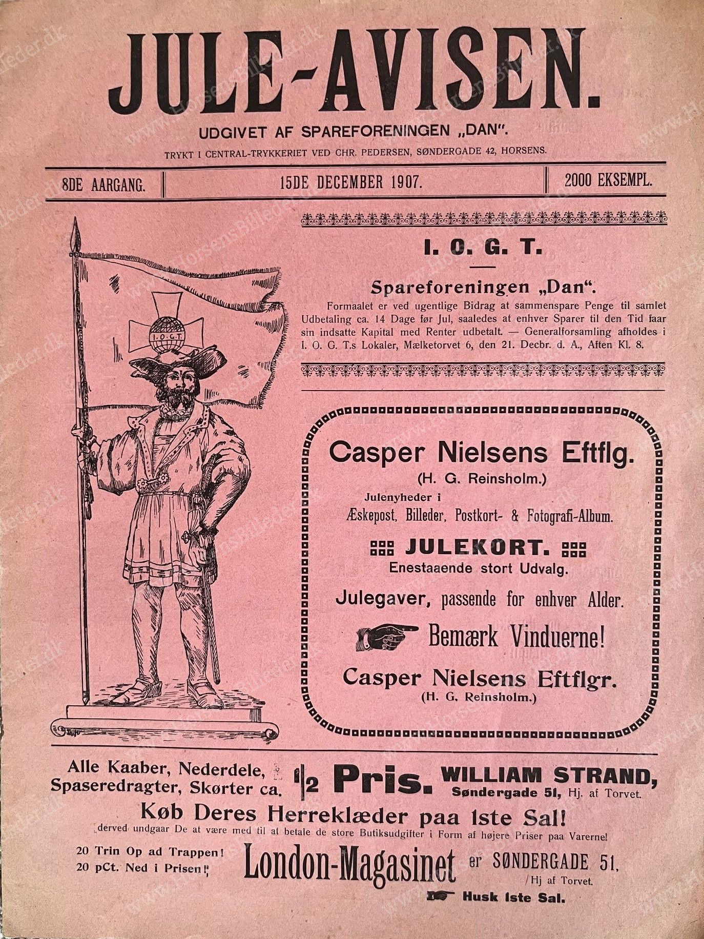 Jule-Avisen. Udgivet af Spareforeningen "DAN" ved I. O. G. T. 8de Aargang. 15de December 1907. 2000 Eksemplarer. Udlåner Frank Miller.