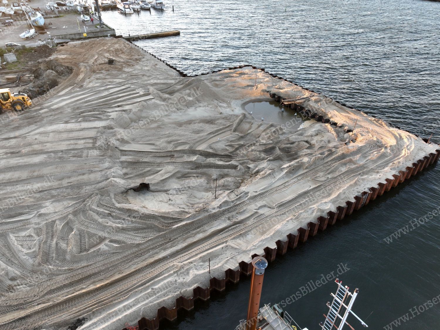Her bankes spuns i, Horsens bliver 2000m2 større. Landvinding skal give plads til et højhus på 22 etager. Ifølge aftalen med Arkil A/S skal landvindingen være færdig den 10. september. Ejeren, AG Gruppen, af den ca. 10.300m2 store store grund via Havneøen ApS fortæller at man ikke går i gang med byggeriet med det samme. Projektet, som indeholder 4 byggefelter: Promenadehuset, Fjordhuset, Parkeringshus og Nordlyset (højhuset) skal først i markedet. I sidste ende er det udbud og efterspørgsel, der afgør evt. byggestart. Den 27/9-2025. Udlåner Jan Østergaard Andersen.