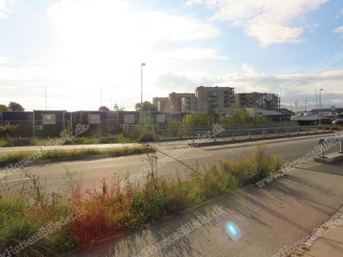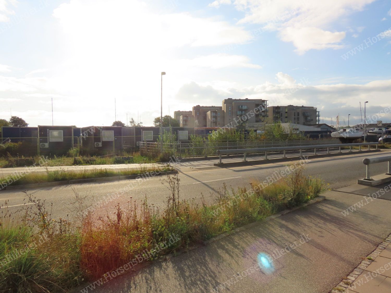 MT Højgaards skurby ved Nordøstpassagen. De skal fikse den østlige mole, som rykkede sig under sidste storm, samt udvide 30 meter. Den 14/9-2025. Udlåner Torben Dalhoff Mikkelsen