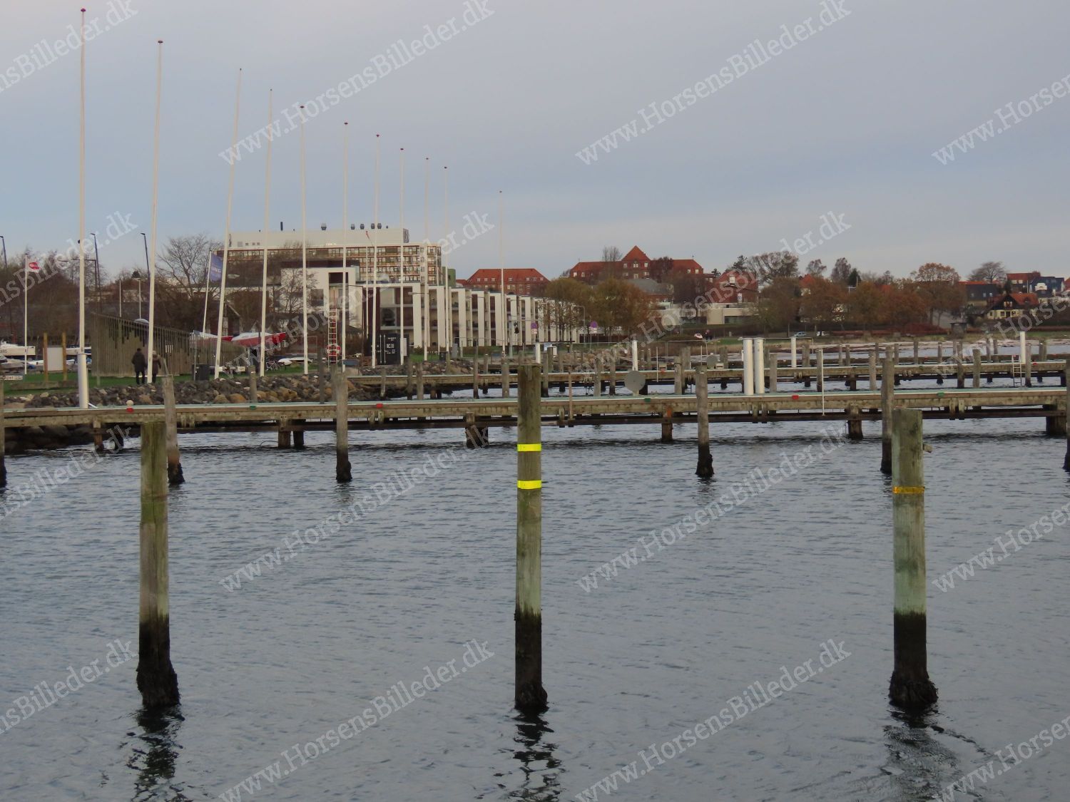 Lystbådehavnen med Langelinie og sygehuset i baggrunden. Den 23/11-2025. Udlåner Torben Dalhoff Mikkelsen.