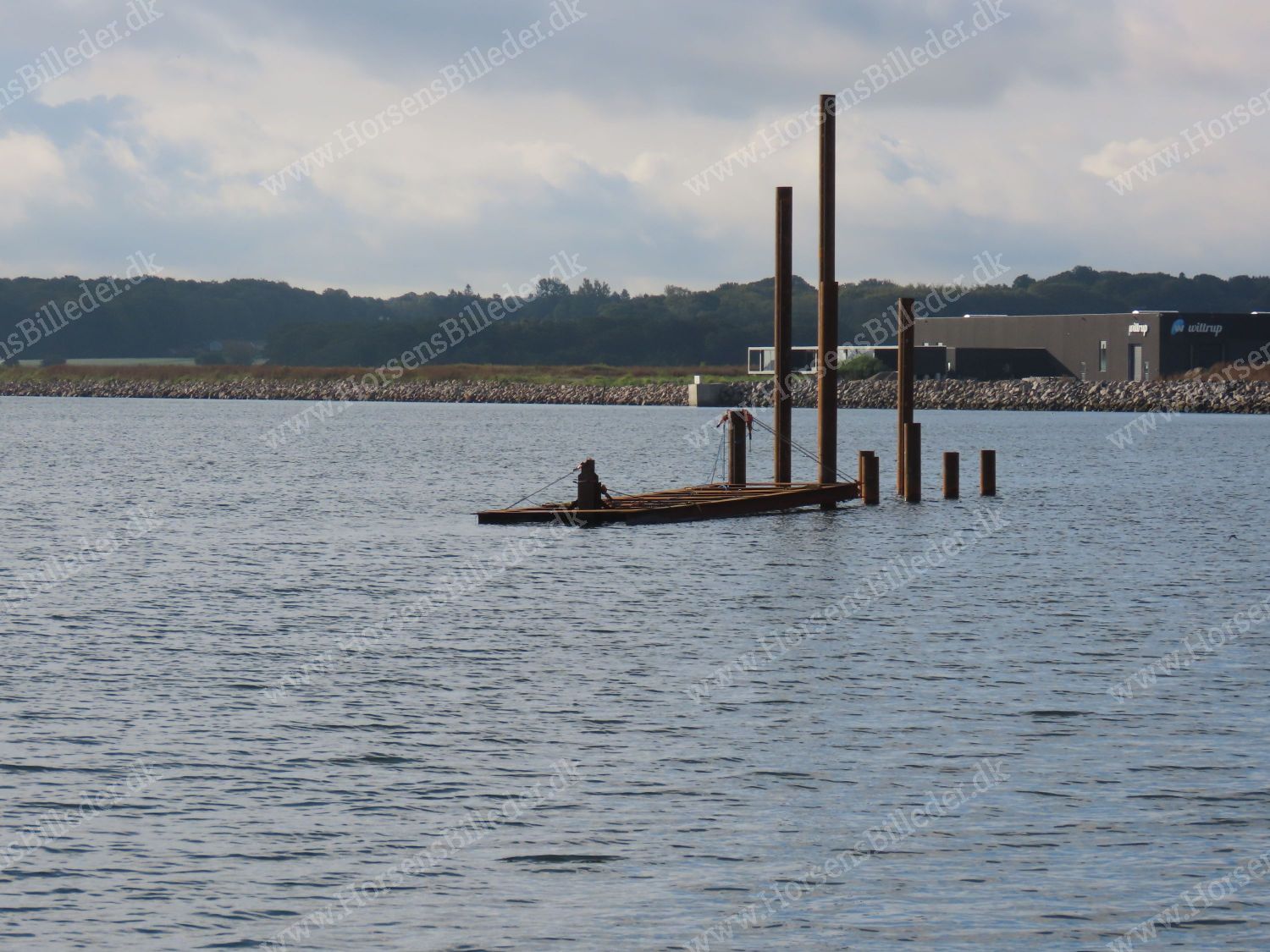Lystbådhavnen pæle til ny mole set mod Sydhavnen. Den 14/9-2025. Udlåner Torben Dalhoff Mikkelsen.