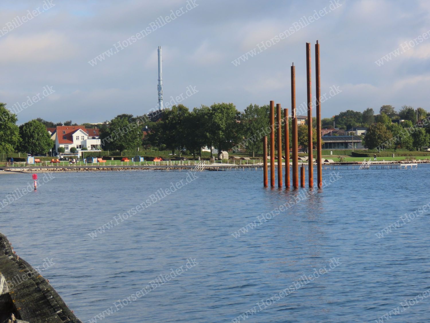 Lystbådhavnen pæle til ny mole set mod Langelinieanlægget. Den 14/9-2025. Udlåner Torben Dalhoff Mikkelsen.