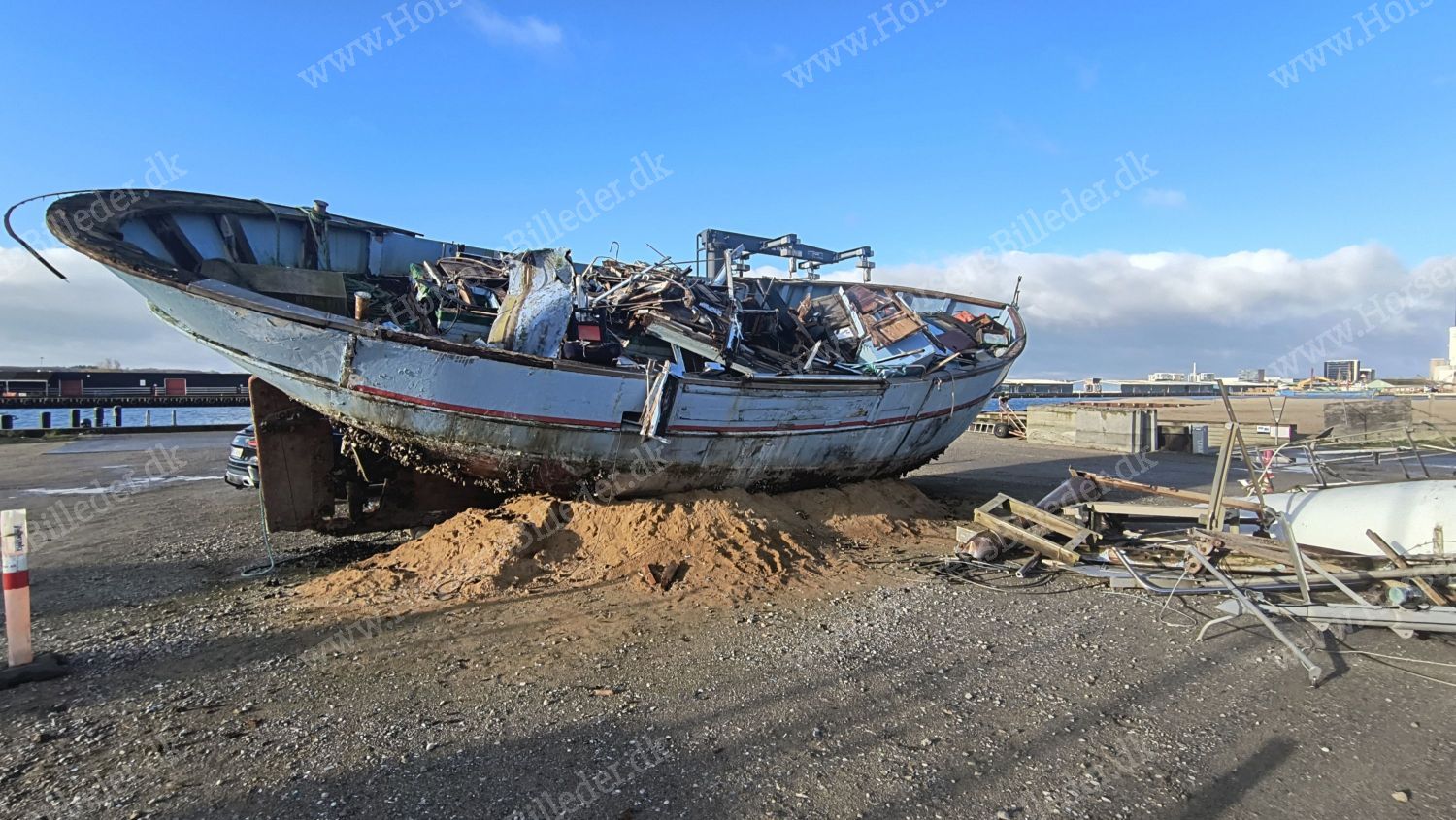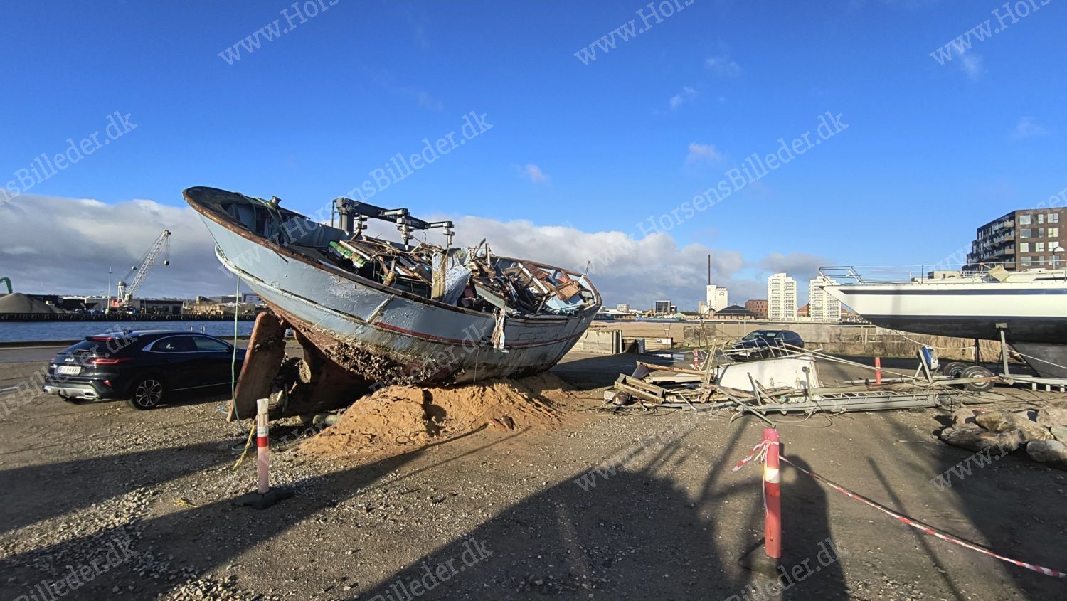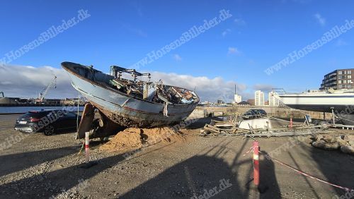 Så bliver den gamle fiskekutter fjernet. Den 4/4-2026. Udlåner John Holgersen.
