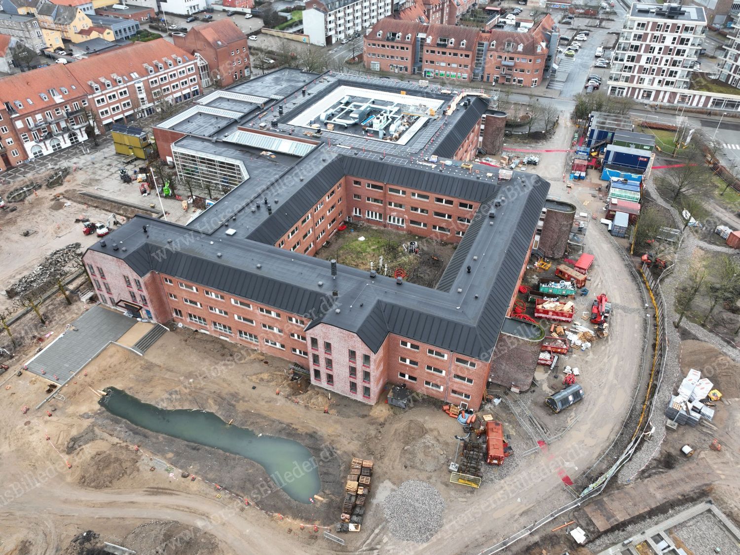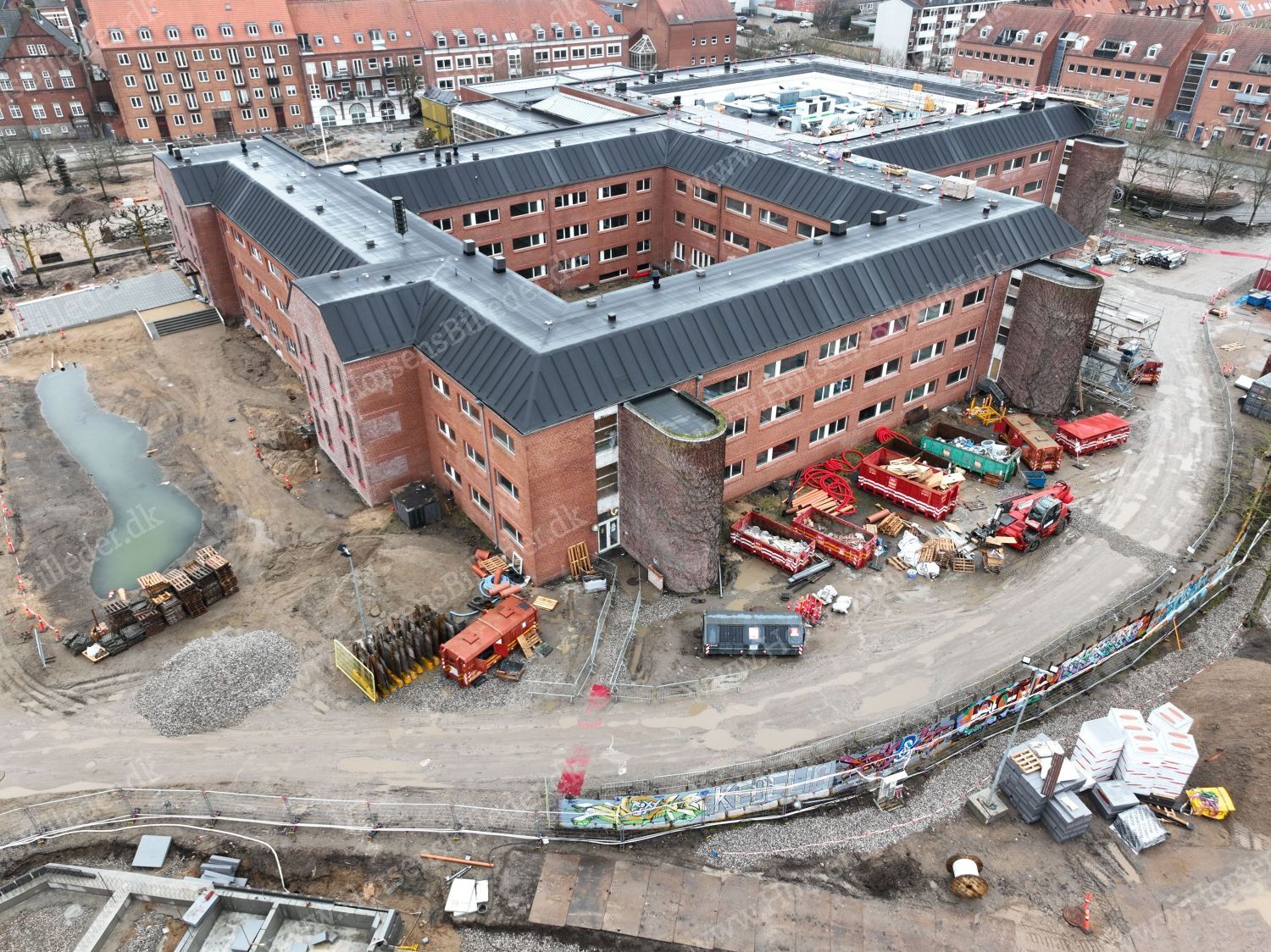 Horsens Samlingspunkt. Renovering og ombygning af den tidligere rådhusbygning, som fremover kommer til at huse, hotel, bibliotek, Borgerservice, Sund By, samt Center for Kommunikation og Teknologi. S. Guldfeldt Nielsen A/S har totalentreprisen. Bygherre: M+ Ejendomme og AP Pension. Samarbejdspartnere: Aart Architects og RØNSLEV. Projektet forventes færdigt maj 2026. Den 28/2-2026. Udlåner Jan Østergaard Andersen.