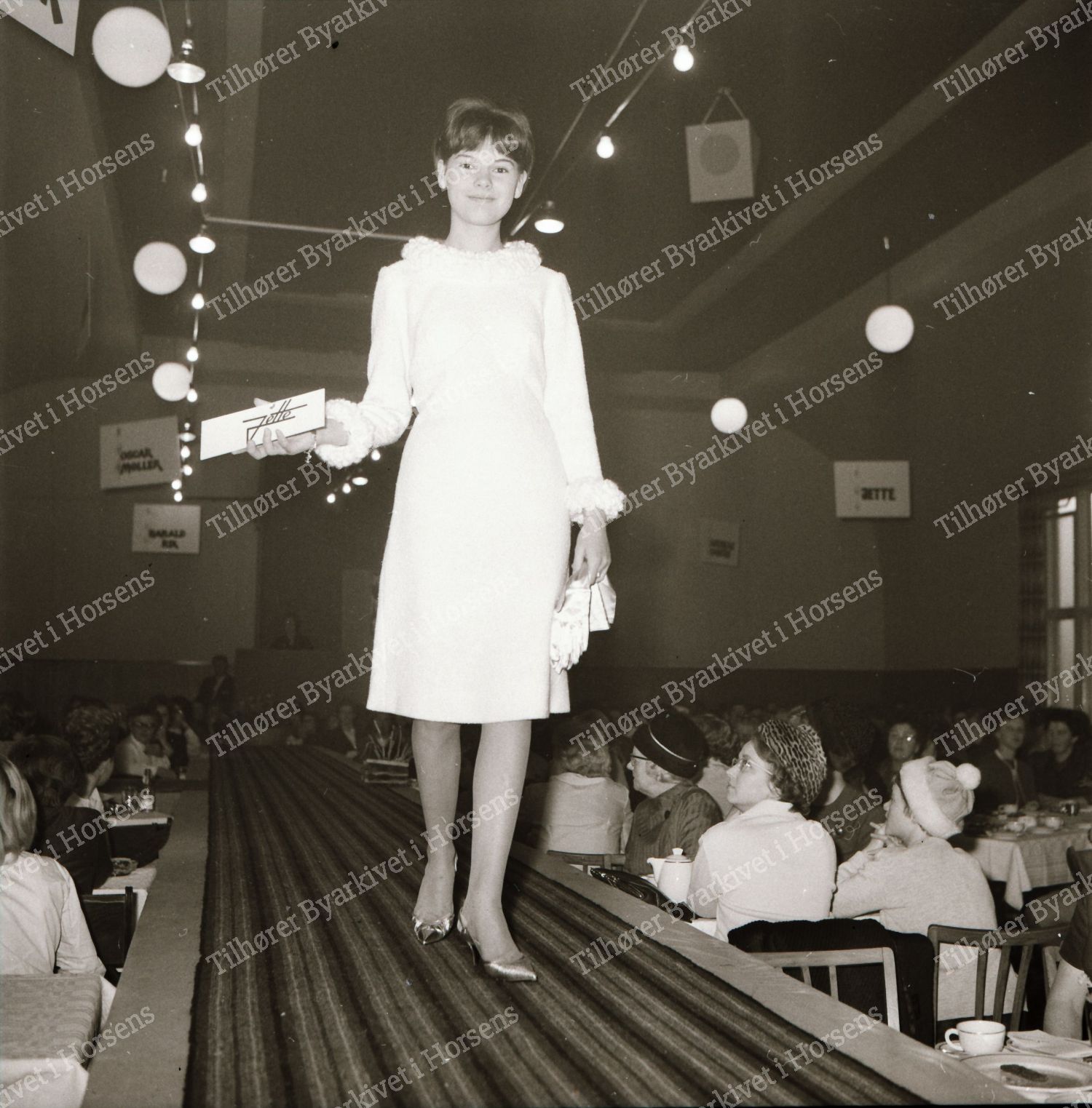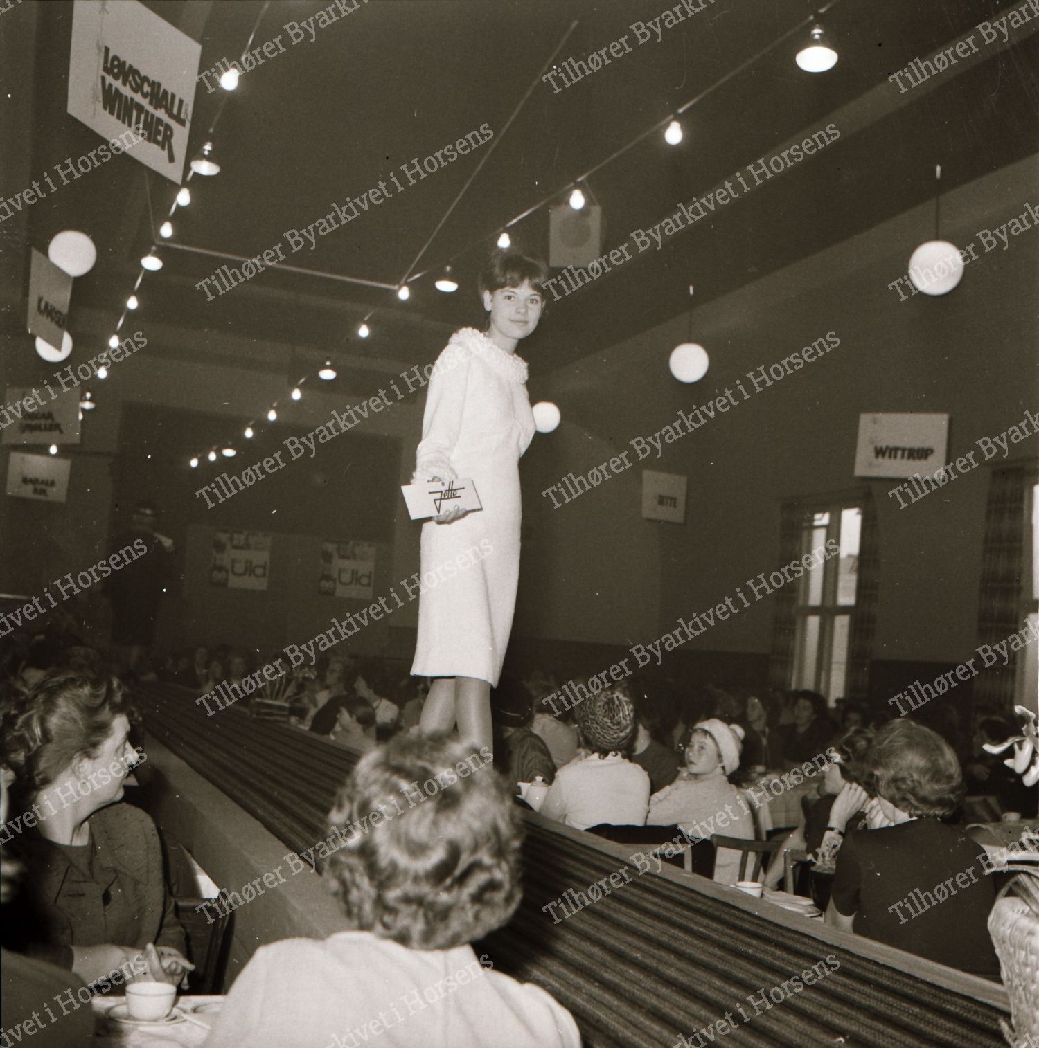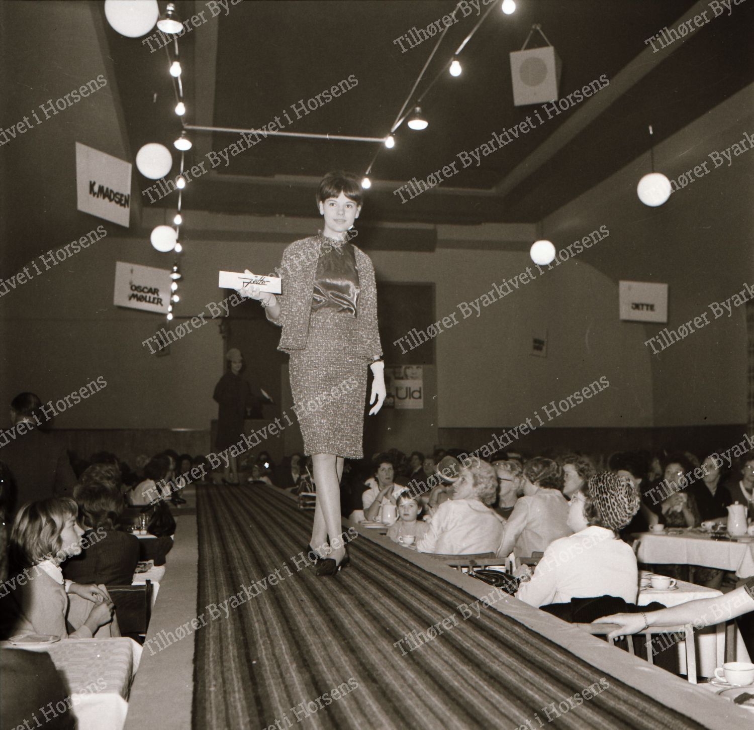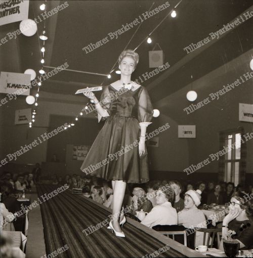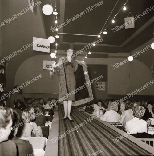 45/64. Textilhandlerne i Horsens præsenterede tøjmode på Hejmdal. HF 6/11-64.