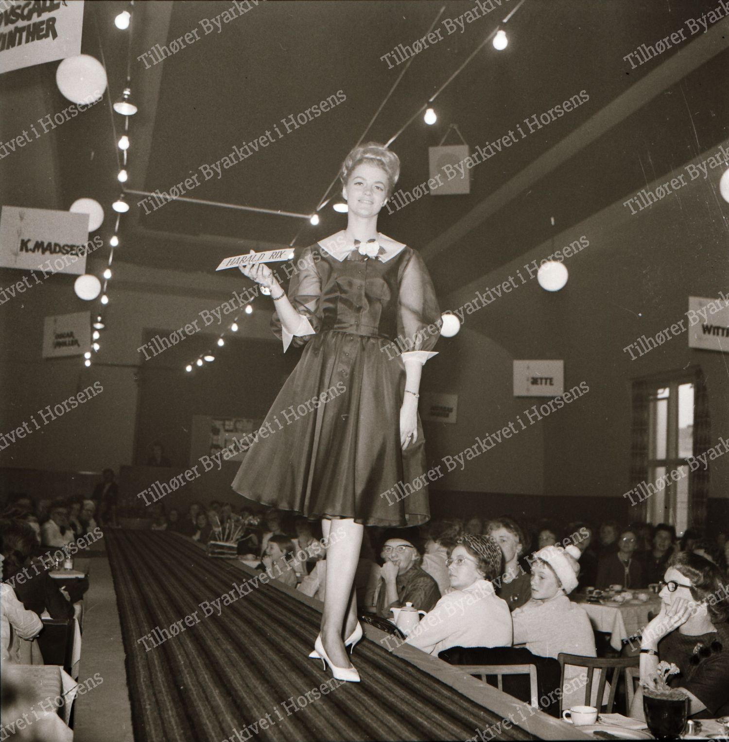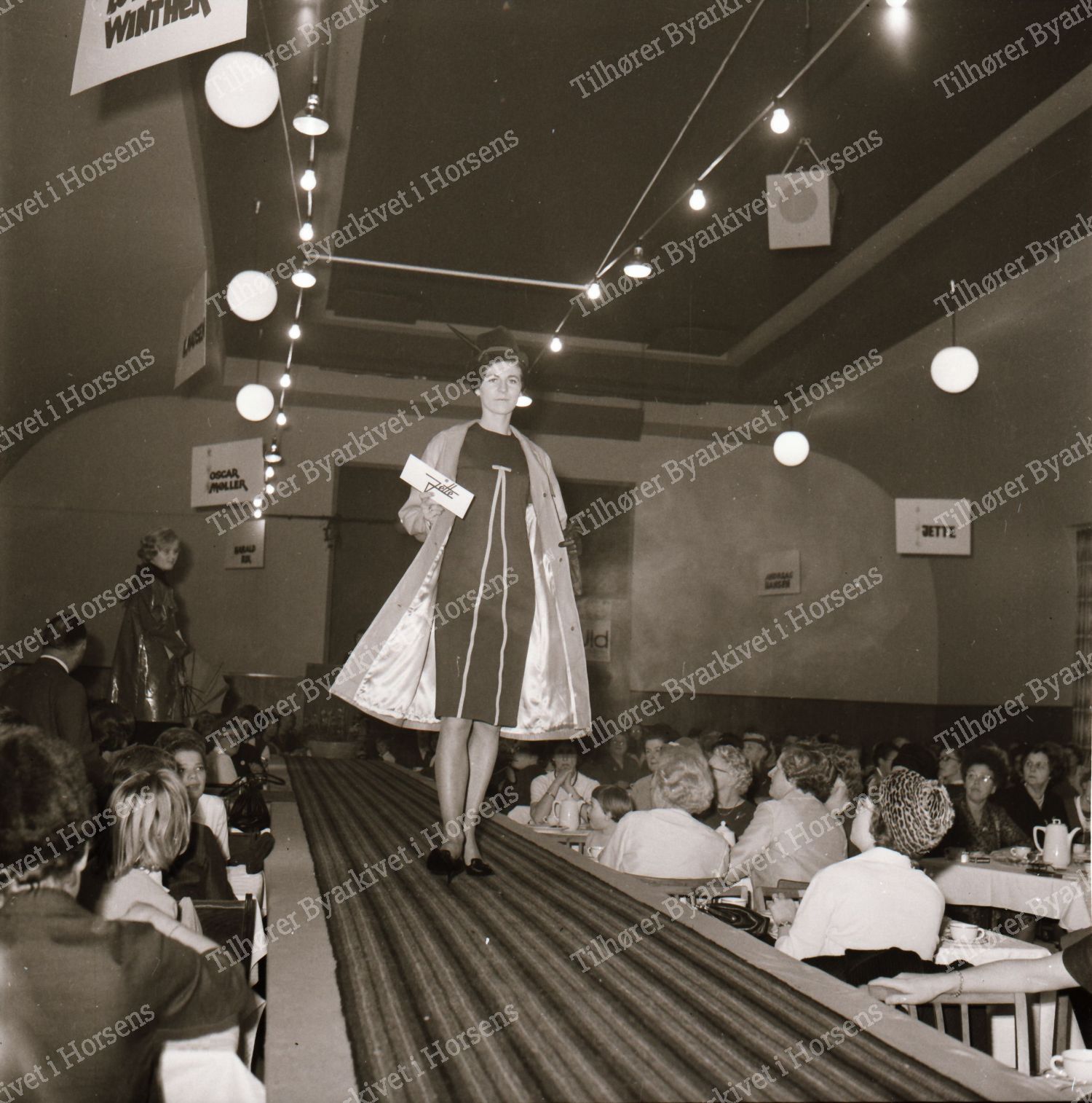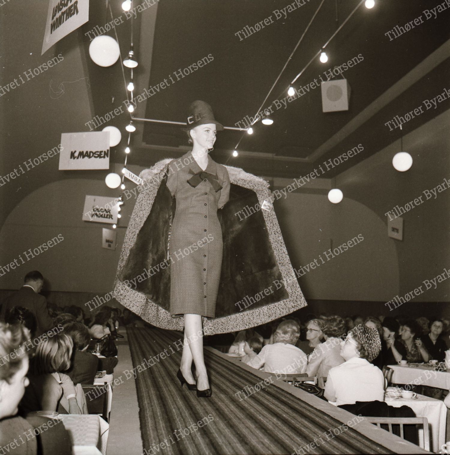 45/64. Textilhandlerne i Horsens præsenterede tøjmode på Hejmdal. HF 6/11-64.