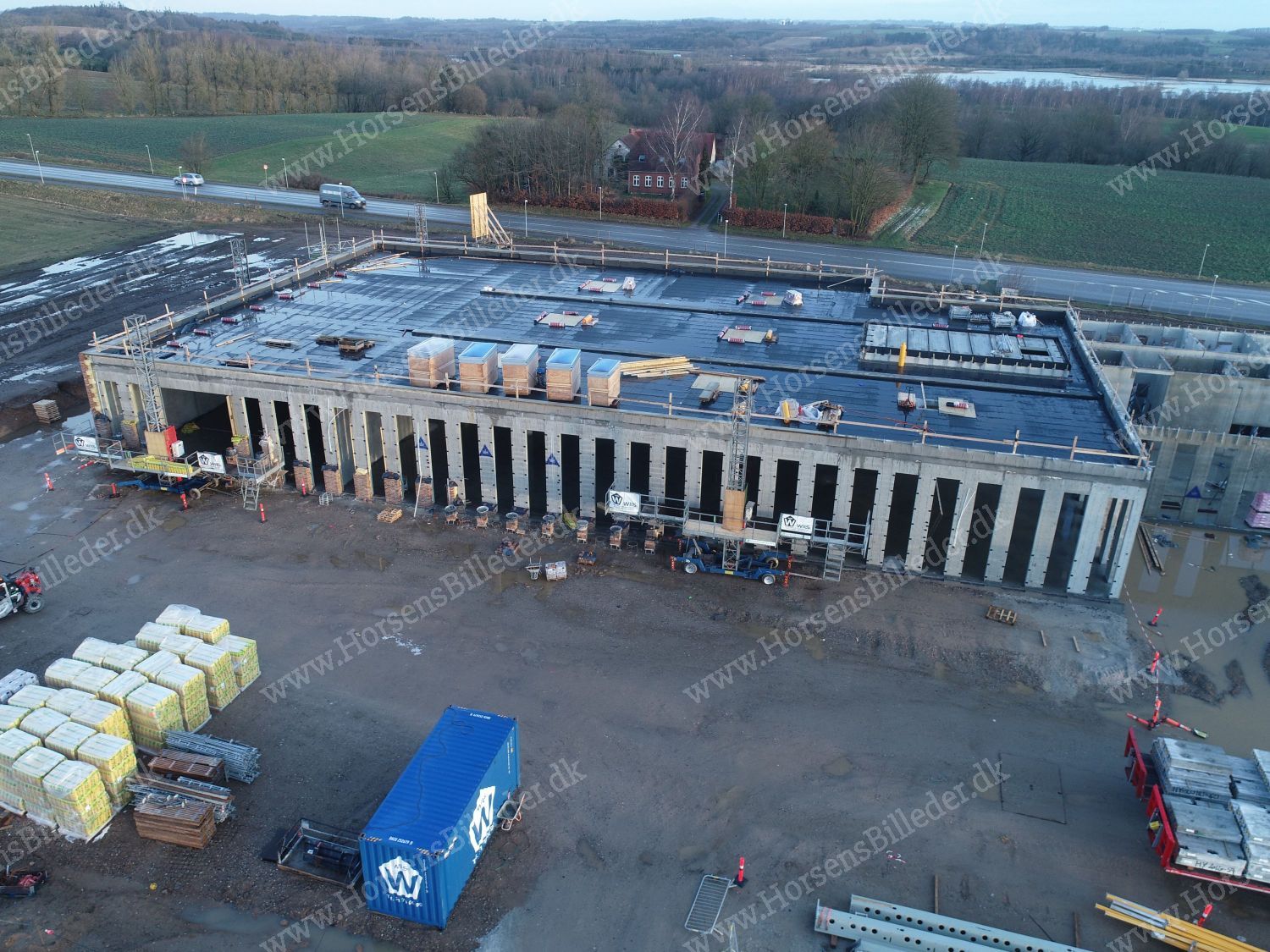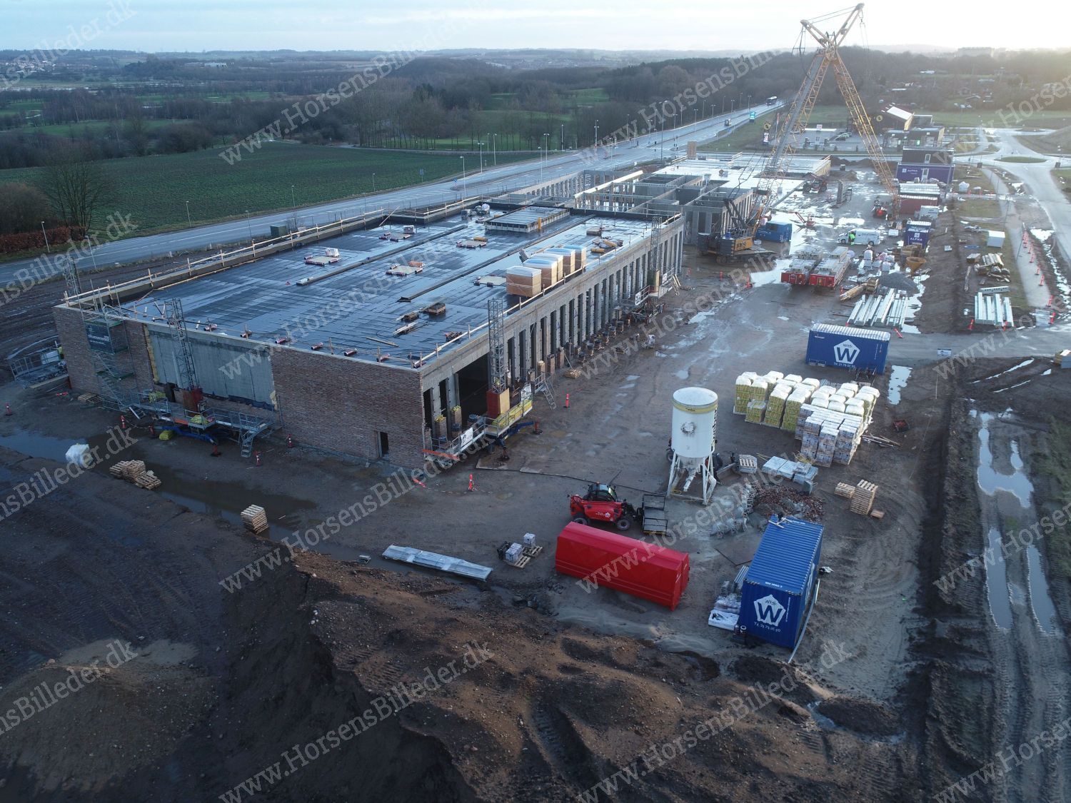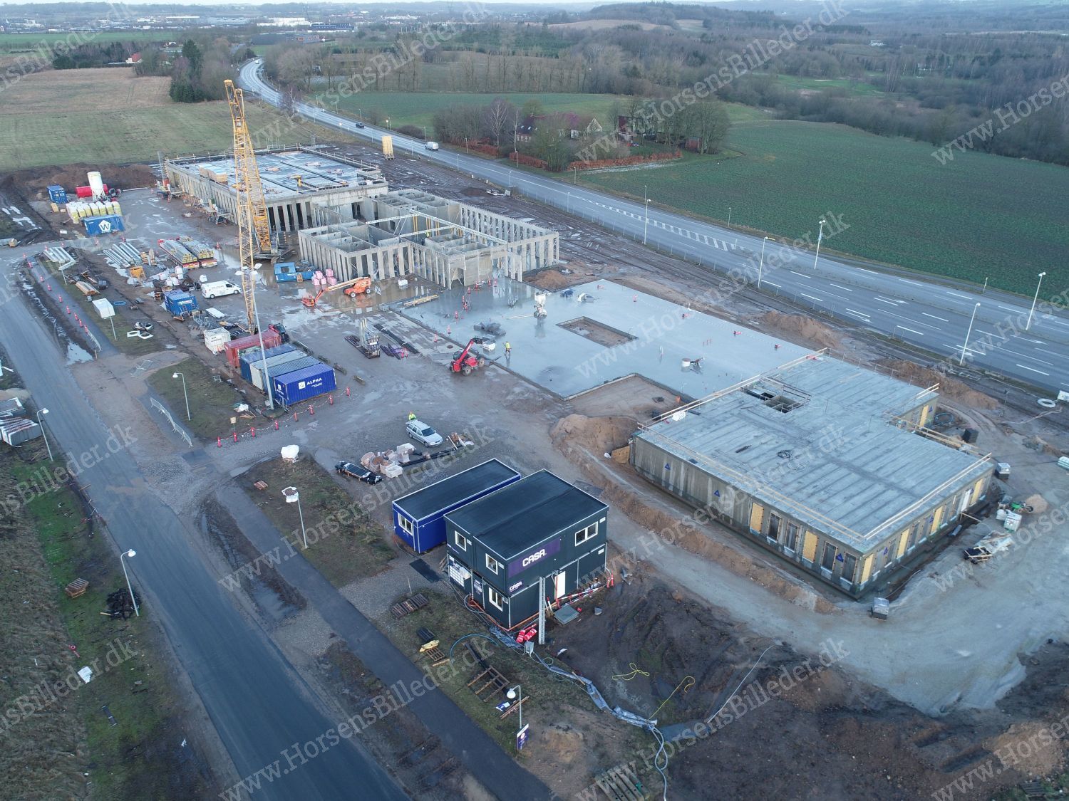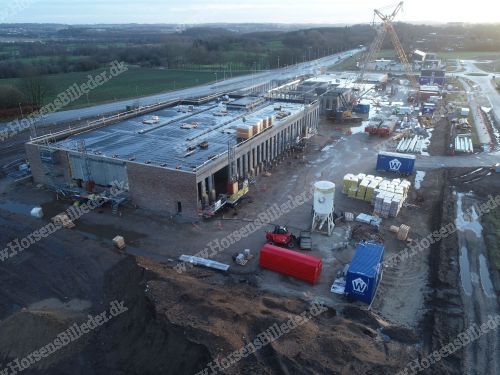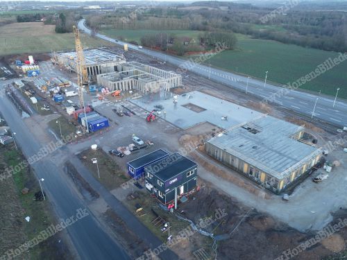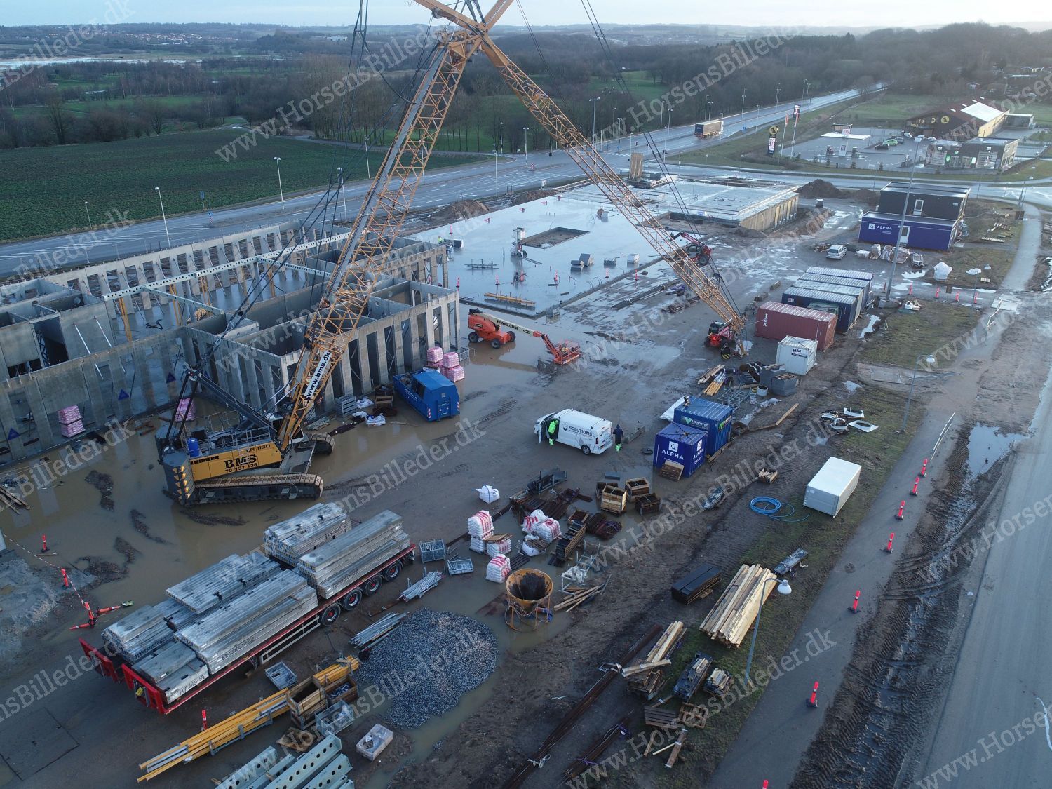 Her i Bygholm Erhvervspark bygger Hybel nyt domicil på knap 5.000 kvm med plads til 150 medarbejdere, lager og show-room. Den 19/2-2022. Udlåner Jan Østergaard Andersen.