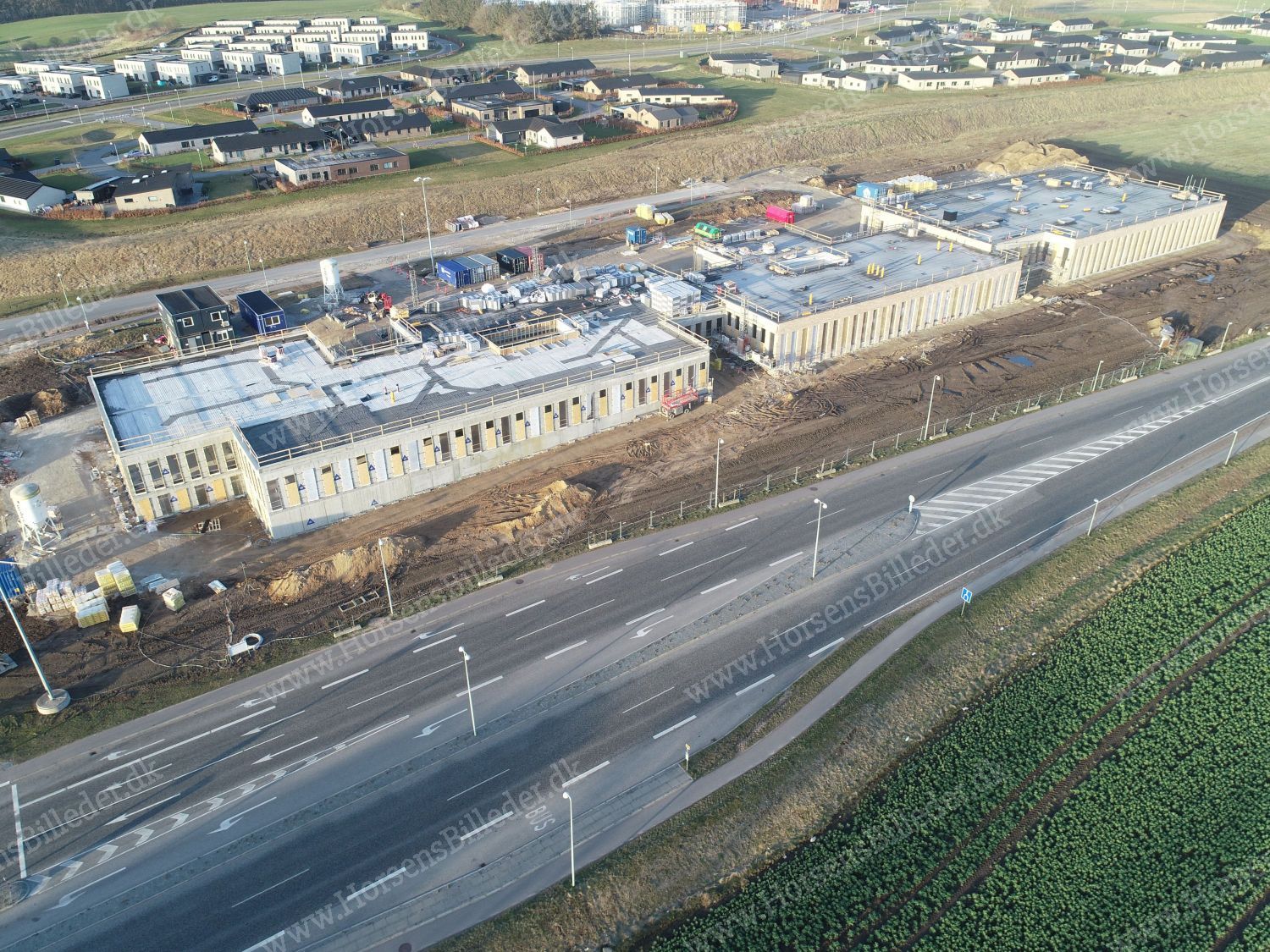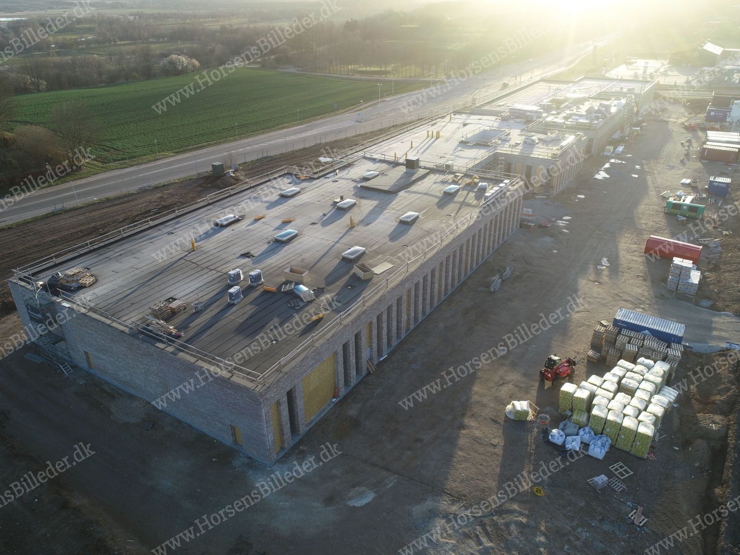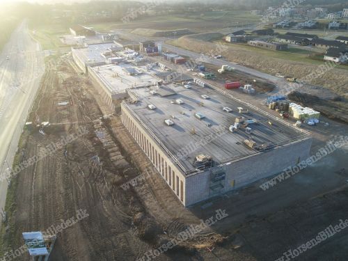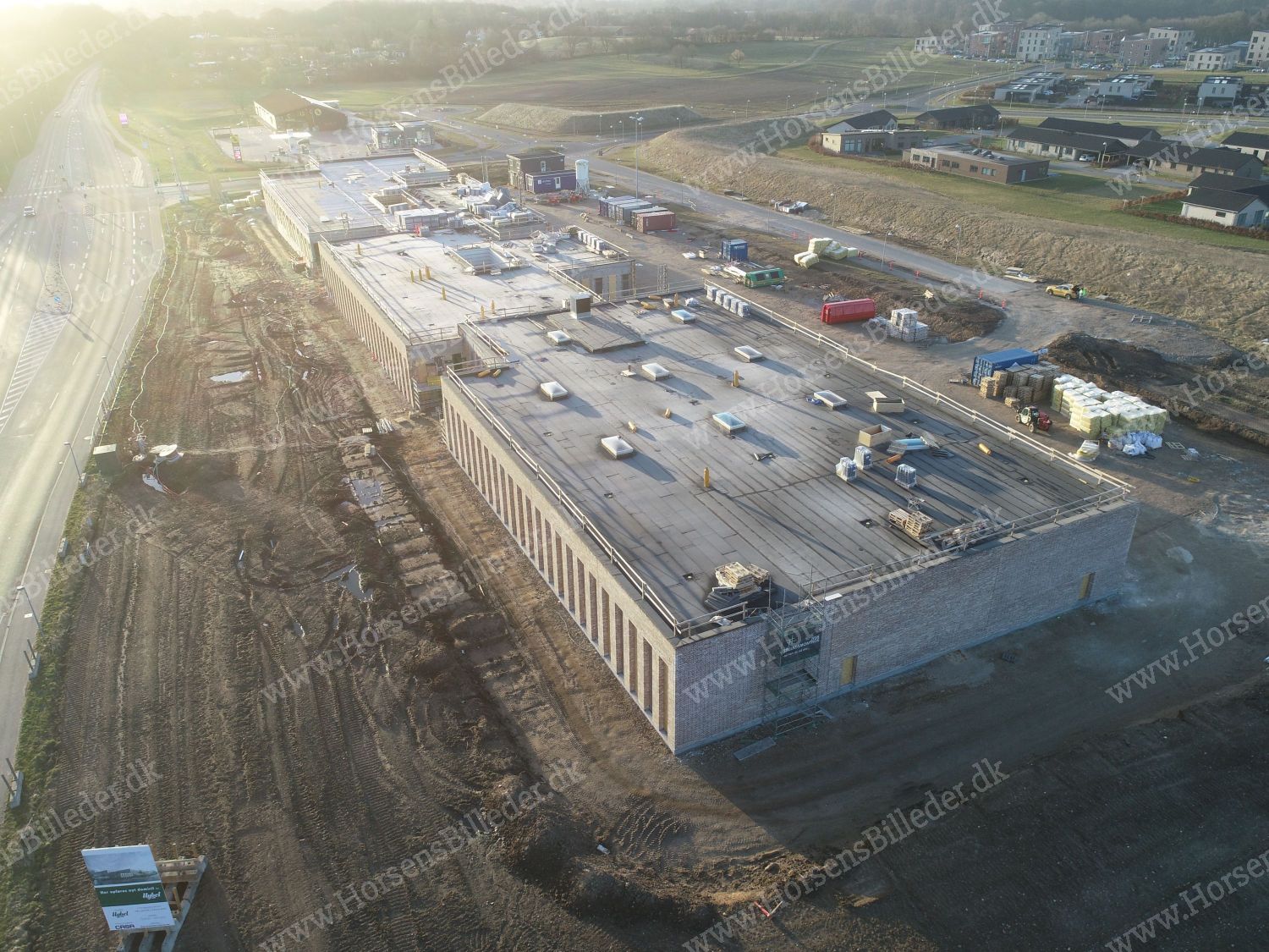 Her i Bygholm Erhvervspark bygger Hybel nyt domicil på knap 5.000 kvm med plads til 150 medarbejdere, lager og show-room. Den 10/4-2022. Udlåner Jan Østergaard Andersen.