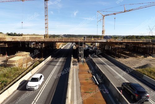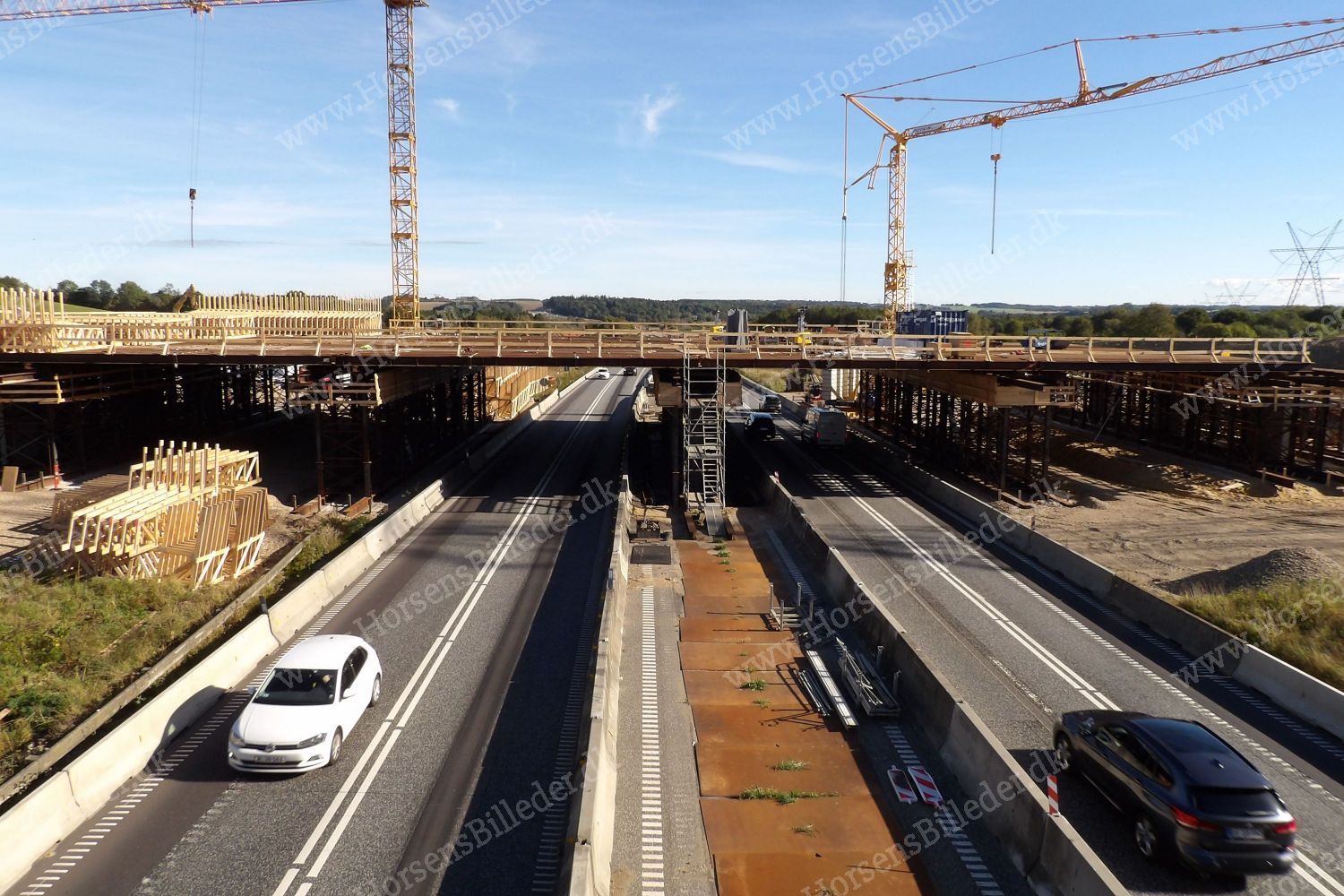 Motorvejudvidelse fra 2 til 3 spor i hver retning, samt ny bro ved Silkeborgvej. Den 24/9-2025. Udlåner John Holgersen.