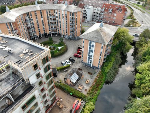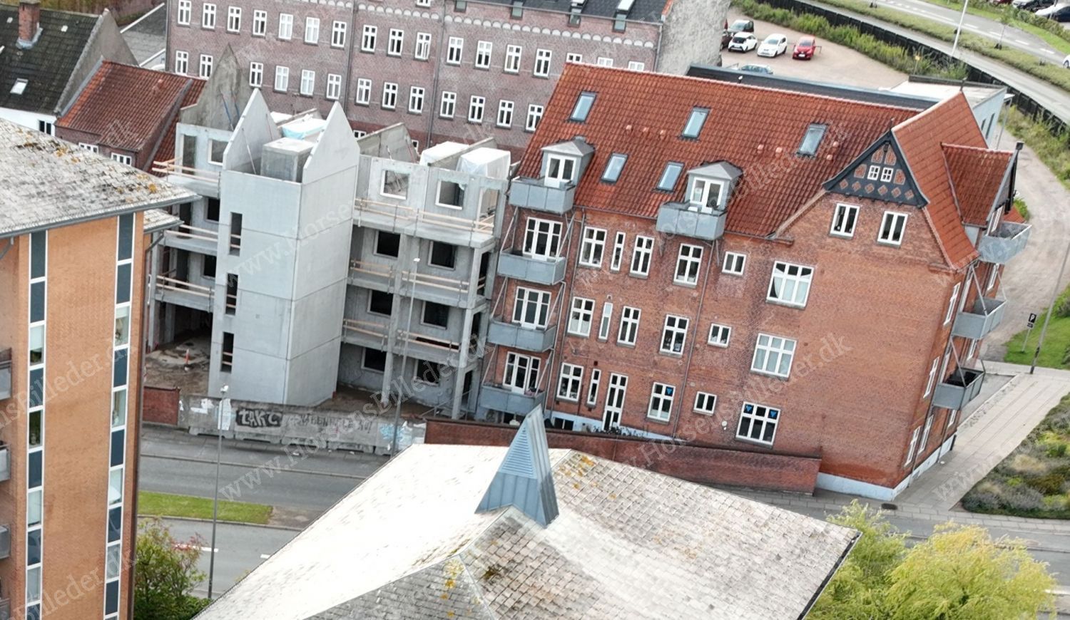 Triton Ejendomme bygger her 15 lejligheder på hver godt 60 m2 i 4 etager. Man forventer at de står klar til indflytning i foråret 2026. Den 13/9-2025. Udlåner Jan Østergaard Andersen.