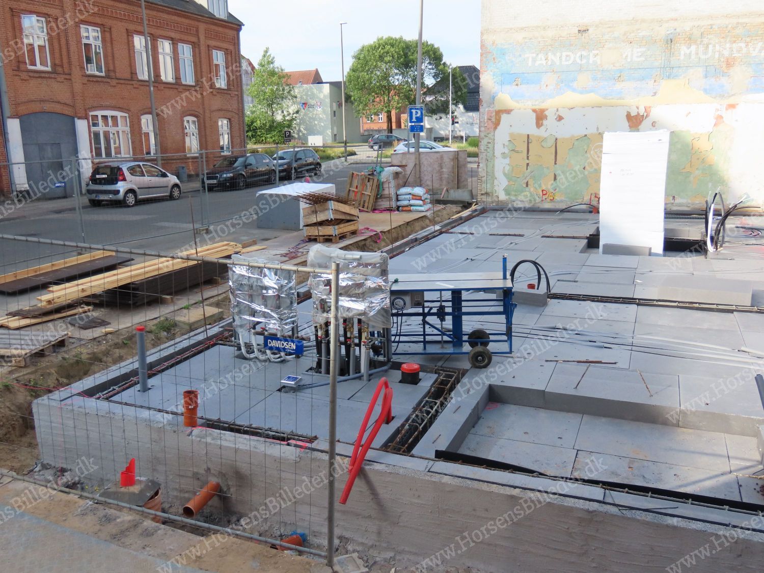 Triton Ejendomme bygger her 15 lejligheder på hver godt 60 m2 i 4 etager. Man forventer at de står klar til indflytning i foråret 2026. Den 20/7-2025. Udlåner Torben Dalhoff Mikkelsen.