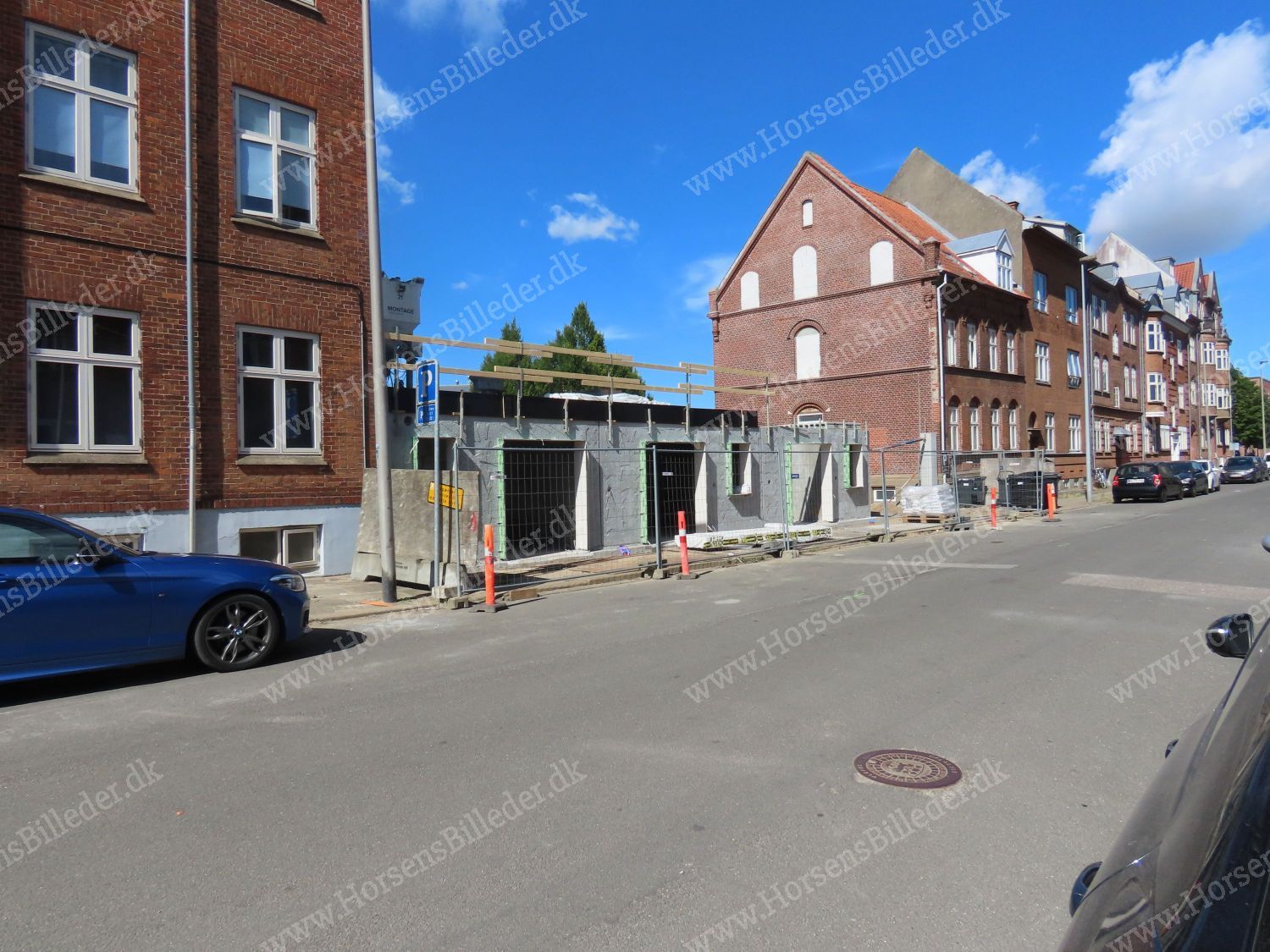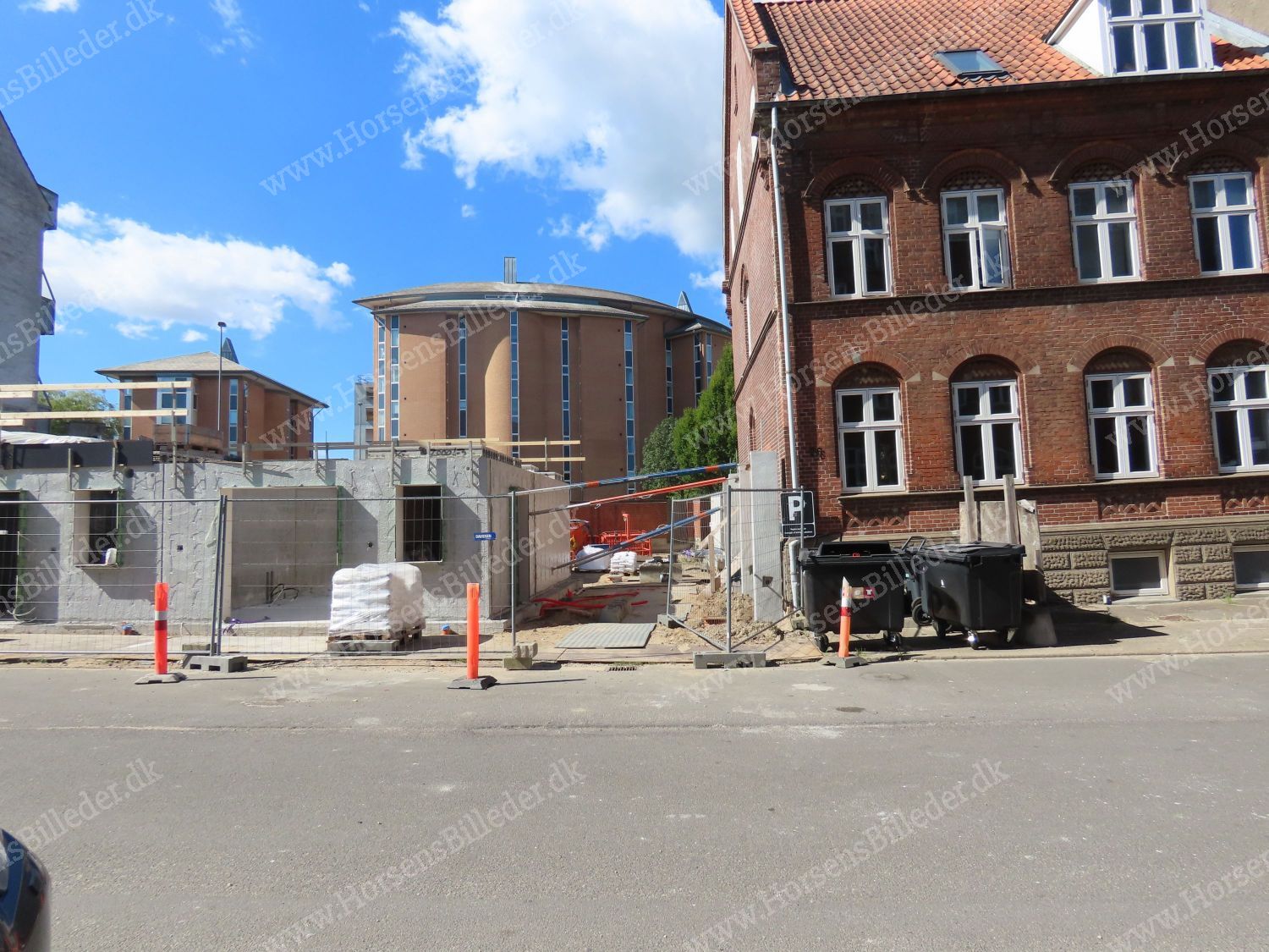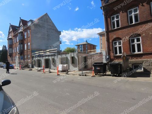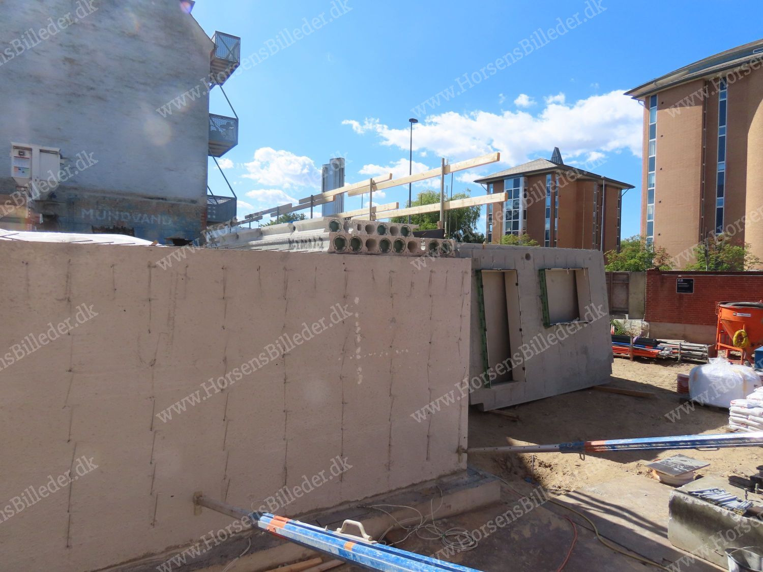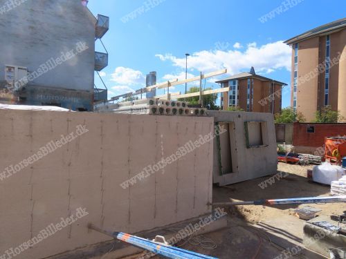 Triton Ejendomme bygger her 15 lejligheder på hver godt 60 m2 i 4 etager. Man forventer at de står klar til indflytning i foråret 2026. Den 17/8-2025. Udlåner Torben Dalhoff Mikkelsen.