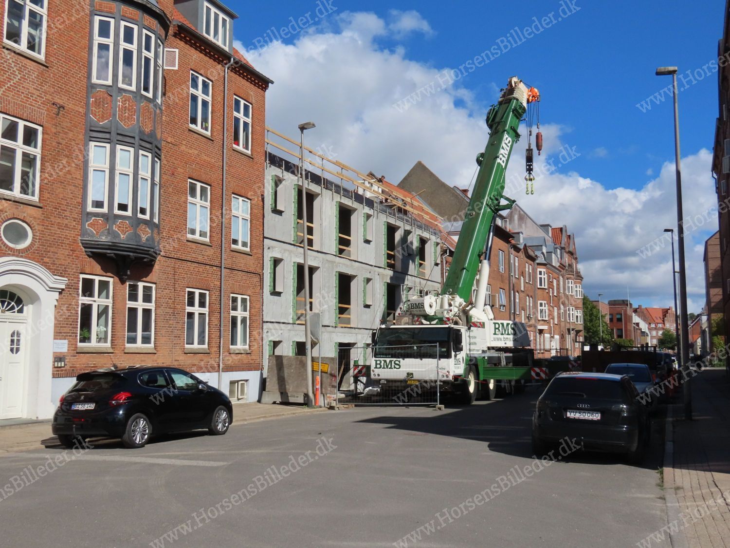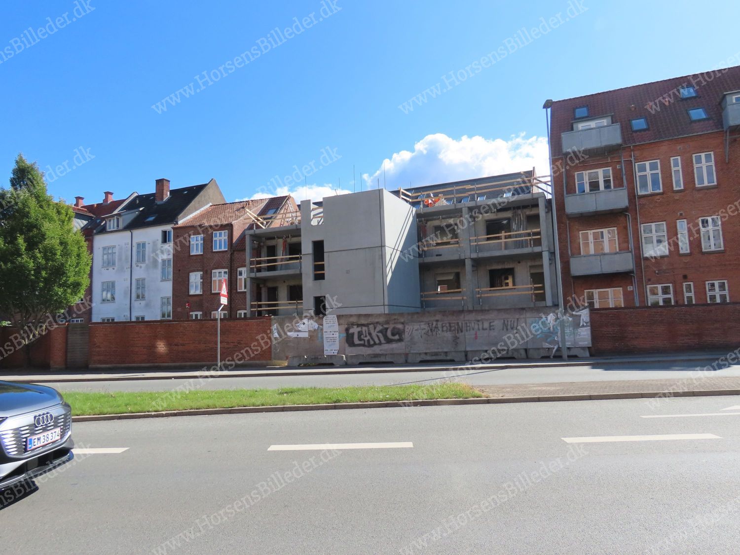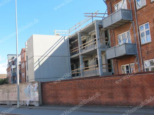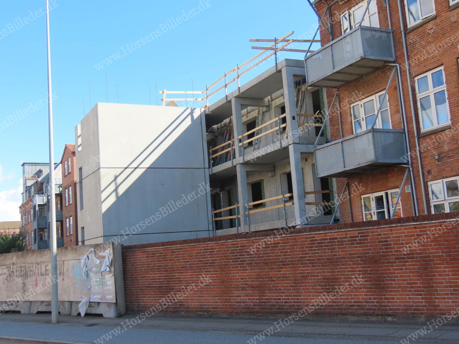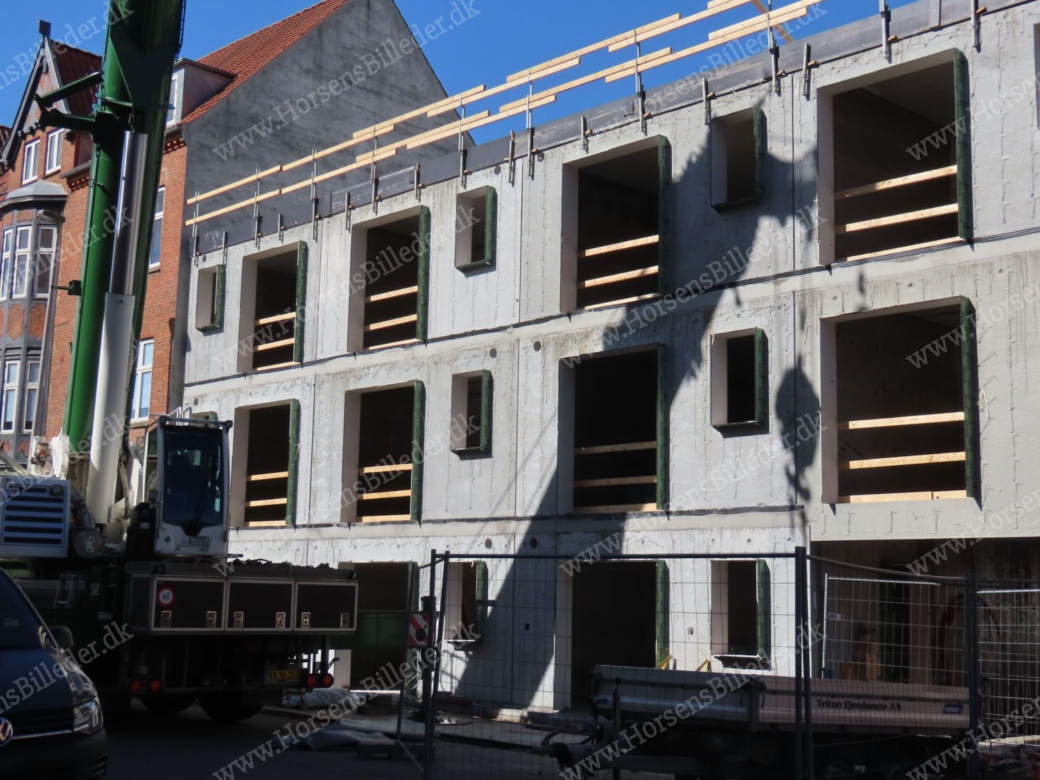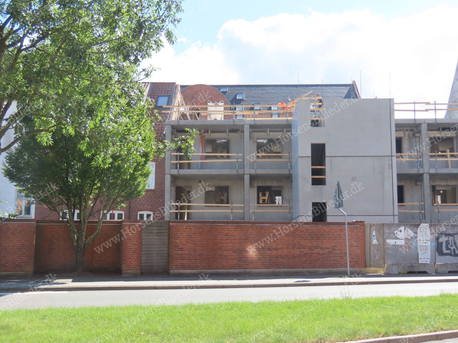 Triton Ejendomme bygger her 15 lejligheder på hver godt 60 m2 i 4 etager. Man forventer at de står klar til indflytning i foråret 2026. Den 6/9-2025. Udlåner Torben Dalhoff Mikkelsen.