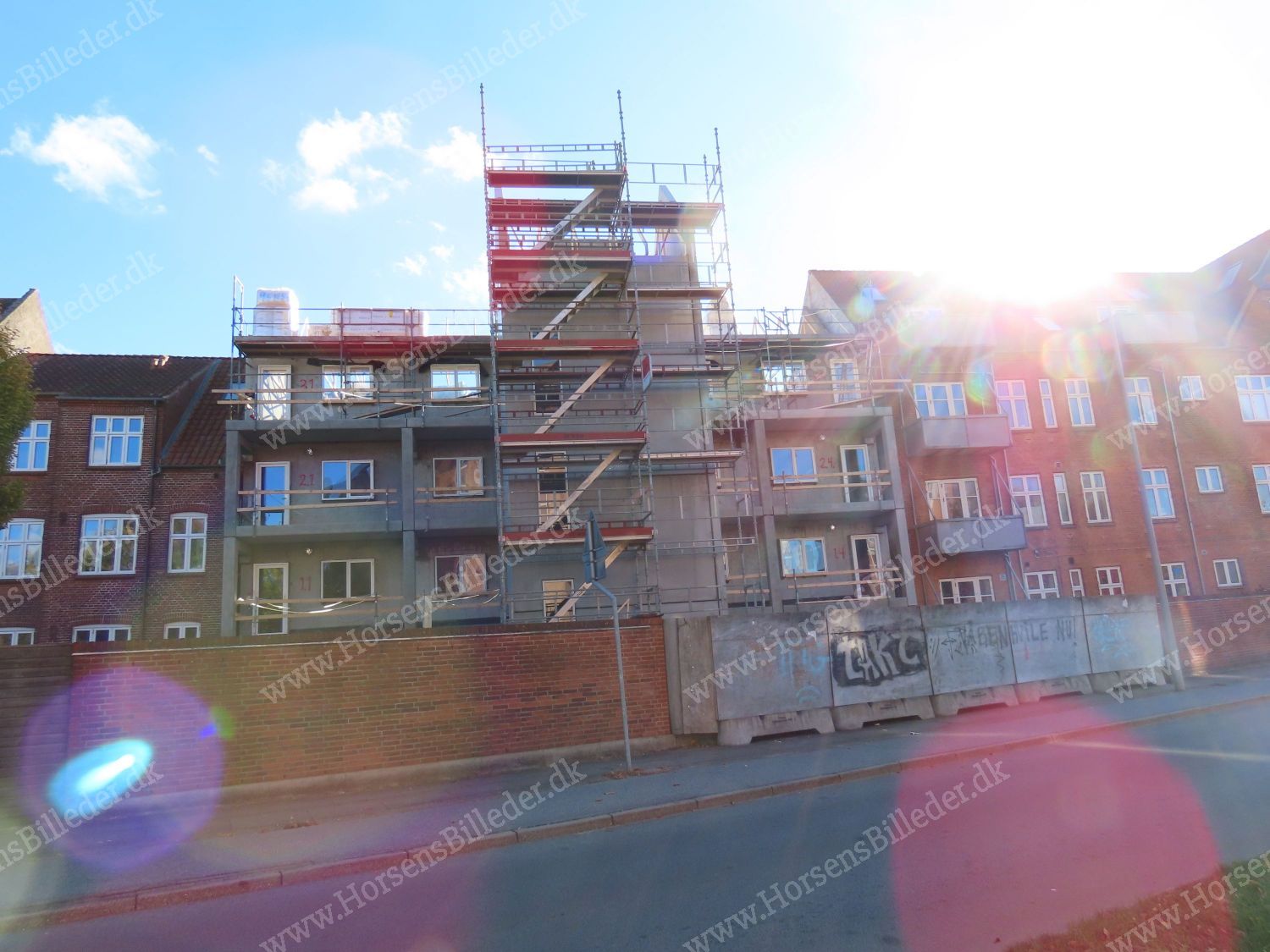 Triton Ejendomme bygger her 15 lejligheder på hver godt 60 m2 i 4 etager. Man forventer at de står klar til indflytning i foråret 2026. Den 19/10-2025. Udlåner Torben Dalhoff Mikkelsen.