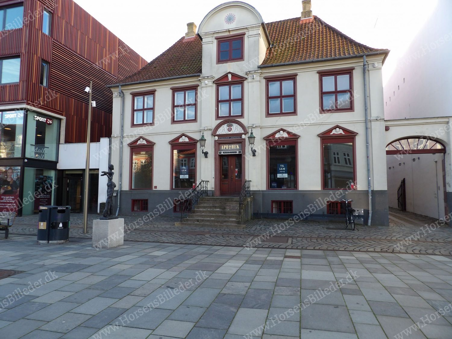 Det tidligere Søndergades Apotek står stadig tomt. Den 18/10-2025. Udlåner John Holgersen.