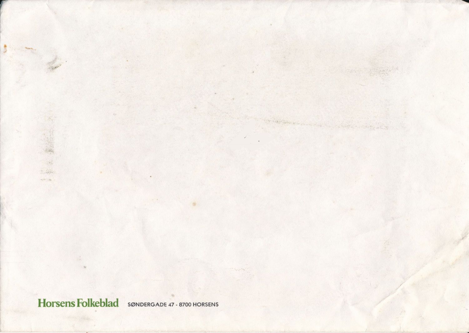 Kuvert fra Horsens Folkeblad. Udlåner Jan Østergaard Andersen.