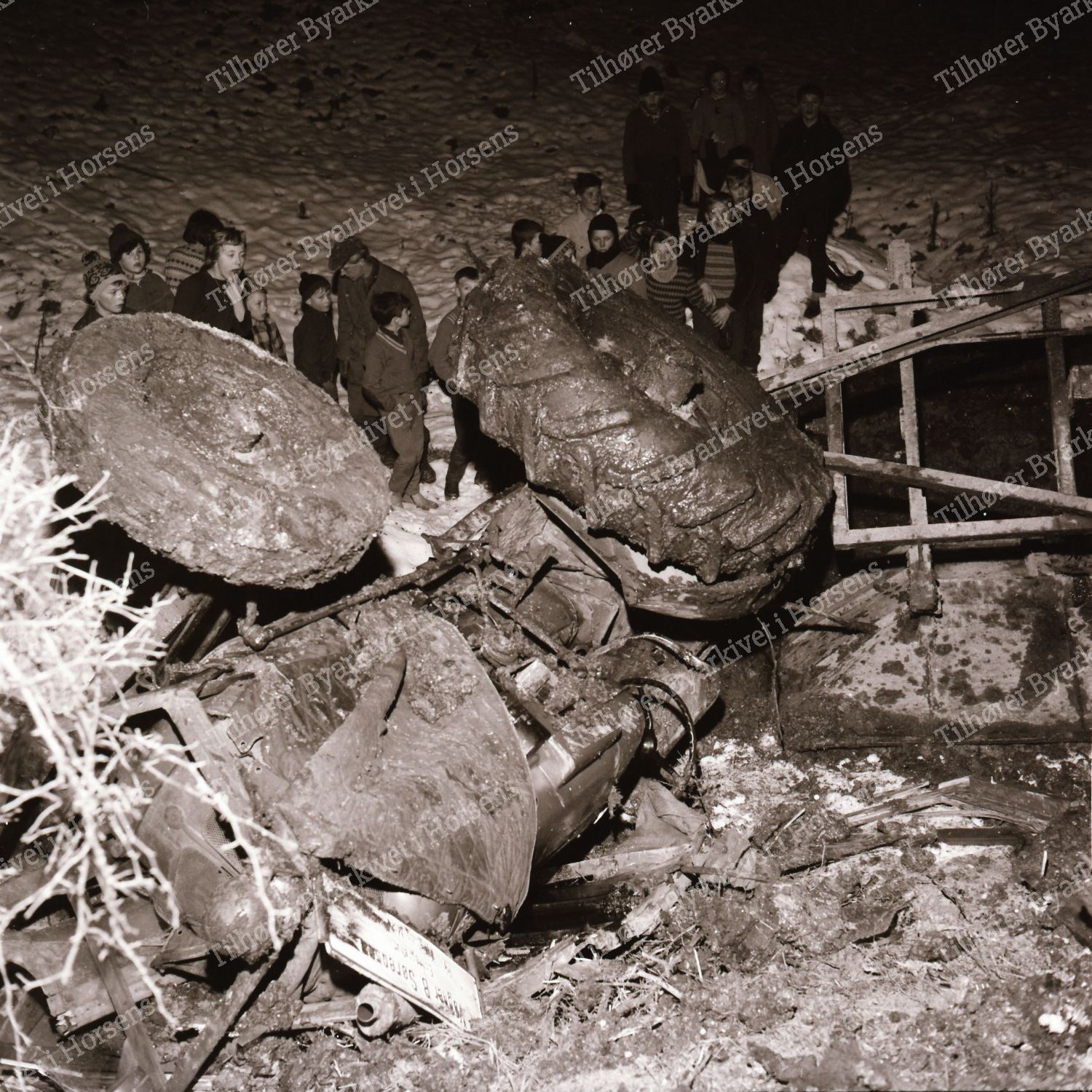 3/64. Traktor væltede i går ifm vejarbejde ved Sundbroen. HF 16/1-64.