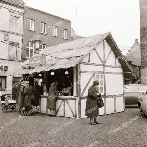 45/64. HfS har stillet sit "sommerhus" op på Torvet som ramme om den årlige tombala. HF 5/11-64.