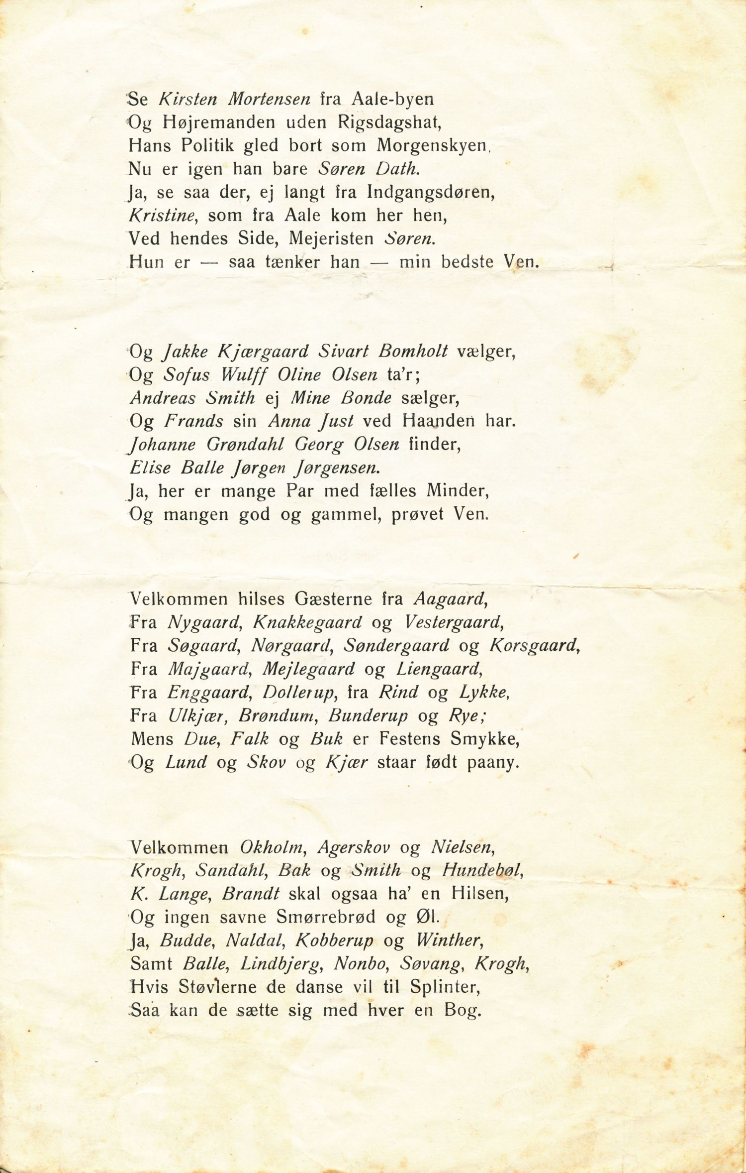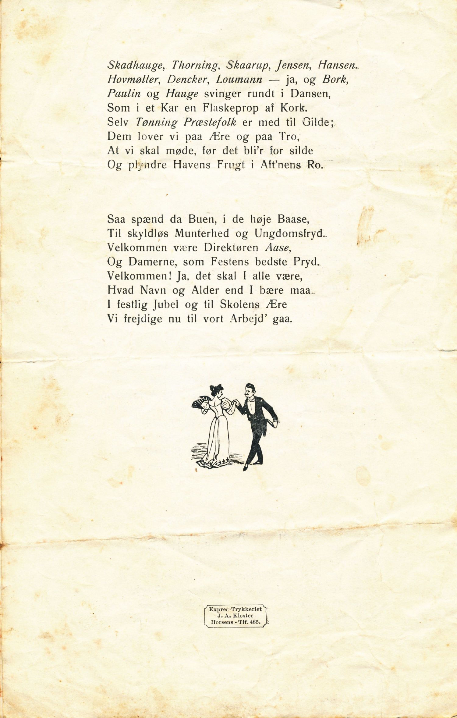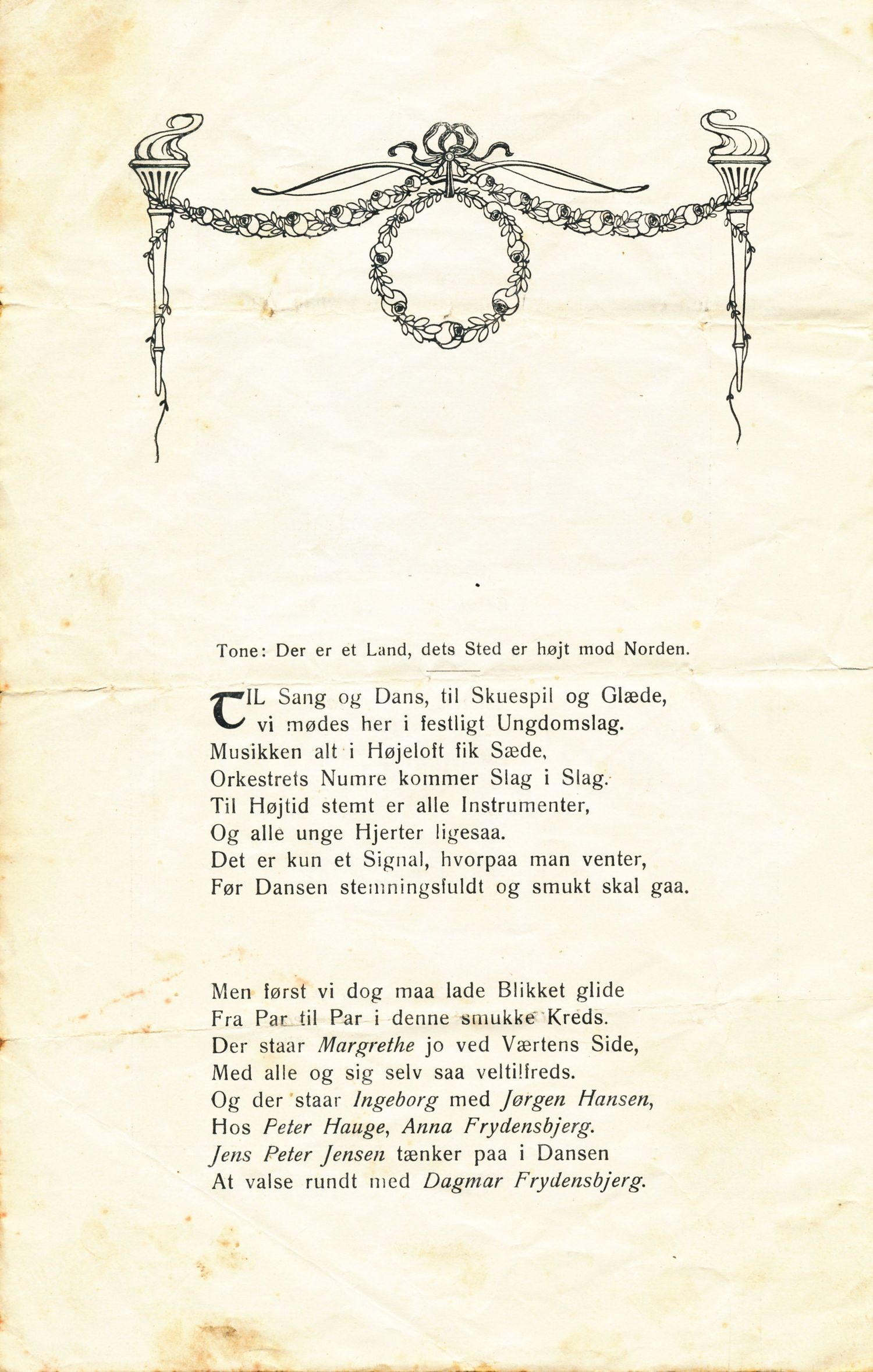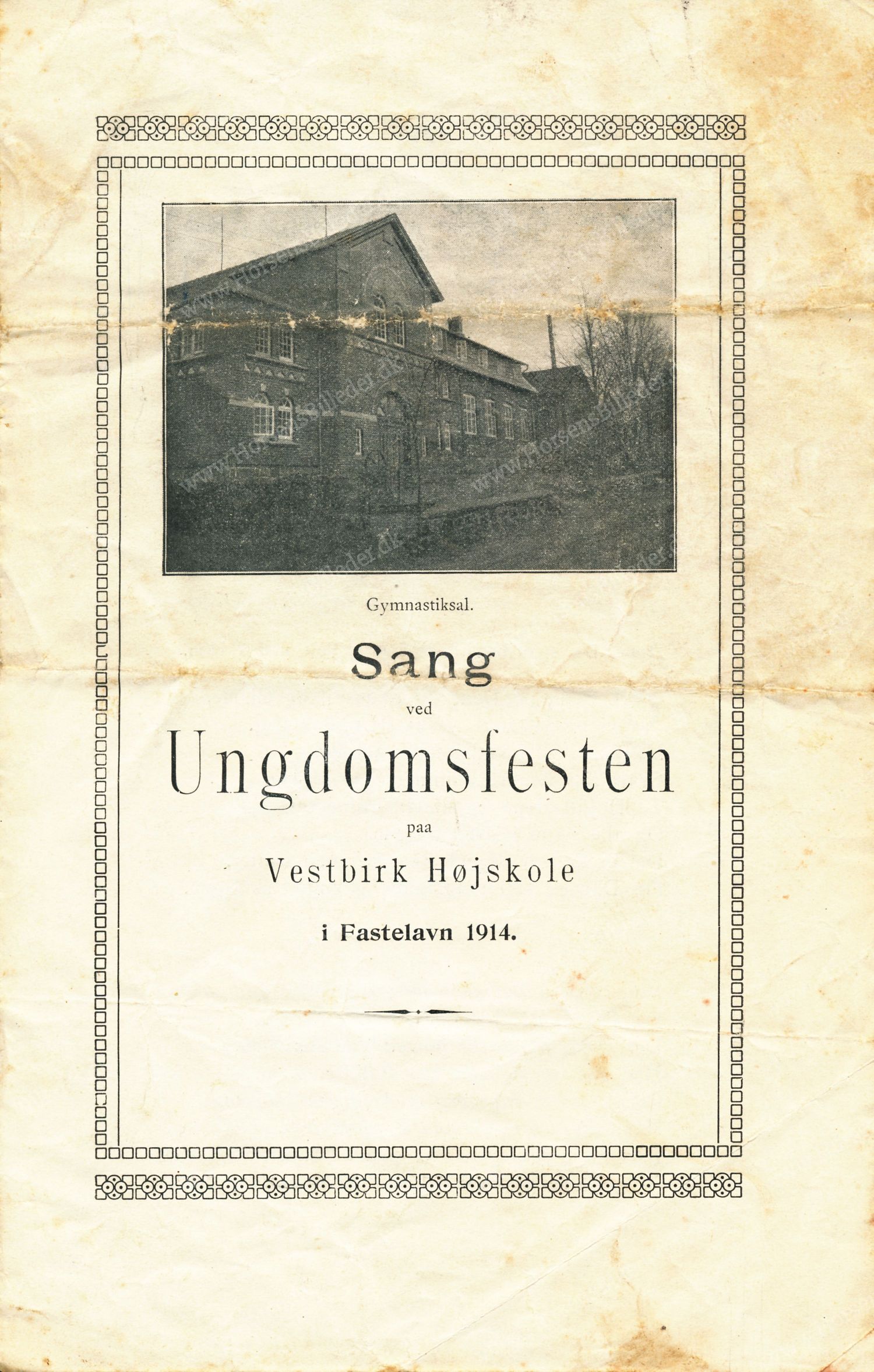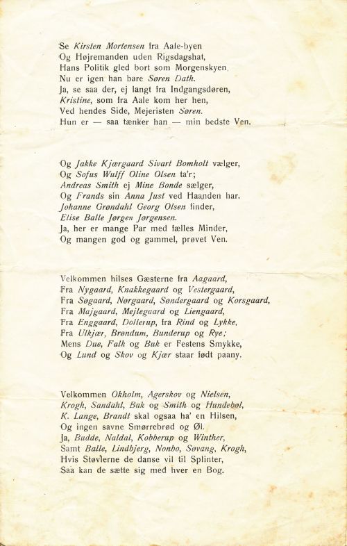 Sanghæfte fra ungdomsfesten på Vestbirk Højskole. Fastelavn 1914. Udlåner Jan Østergaard Andersen.